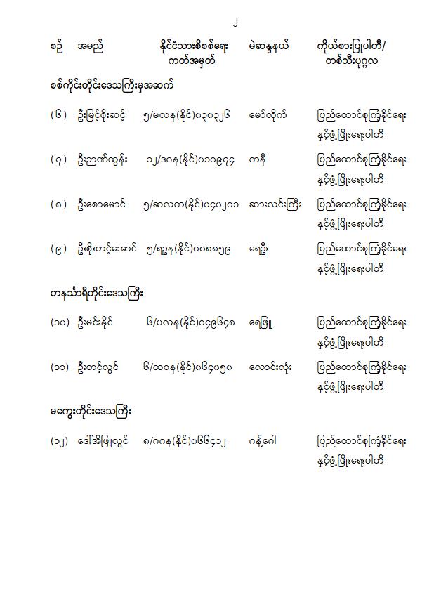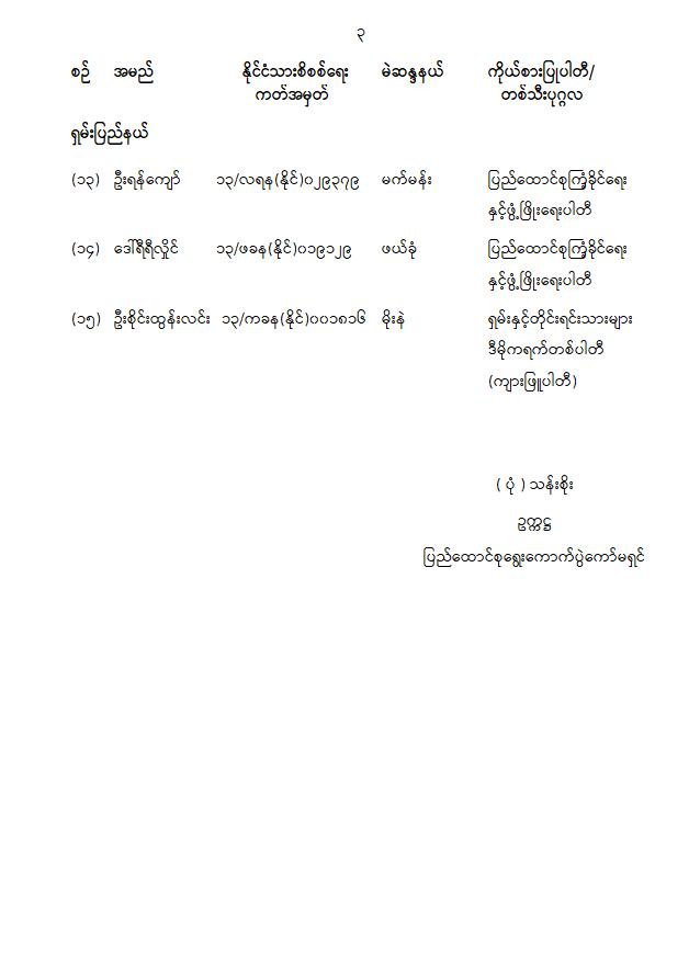 ပြည်သူ့လွှတ်တော်ကိုယ်စားလှယ်အဖြစ် အမည်စာရင်းကြေညာခြင်း