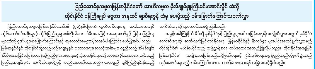 ပြည်ထောင်စုသမ္မတမြန်မာနိုင်ငံတော်၏ (၇၈) နှစ်မြောက် လွတ်လပ်ရေးနေ့အတွက် ပြည်ပနိုင်ငံ အကြီးအကဲများက ဝမ်းမြောက်ကြောင်း သဝဏ်လွှာပေးပို့