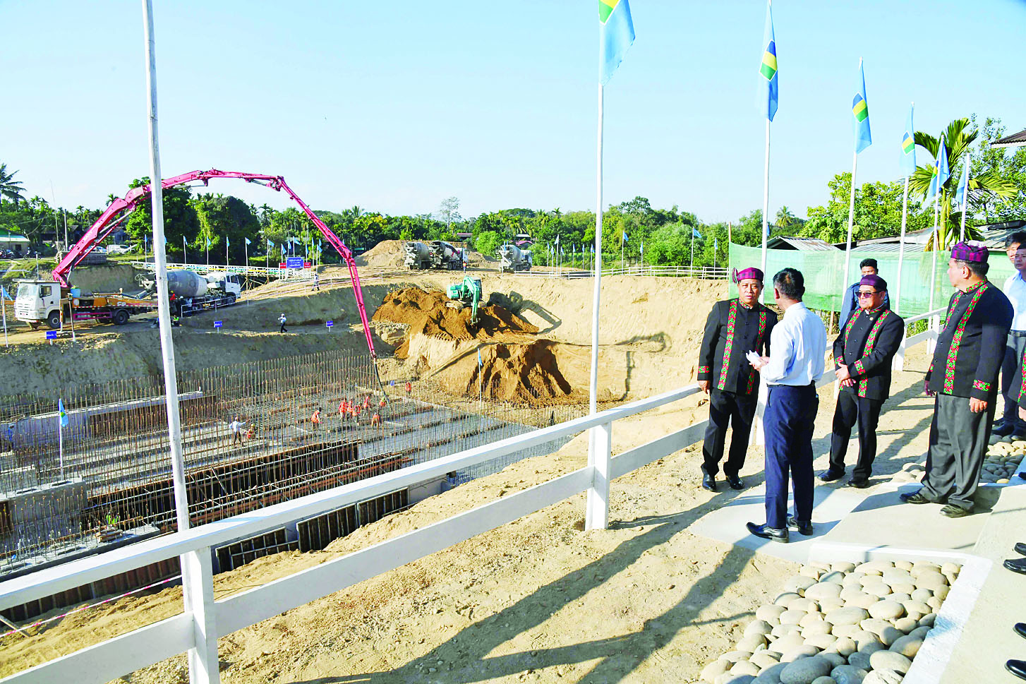 ထို့နောက် ဆည်မြောင်းနှင့်ရေအသုံးချ မှုစီမံခန့်ခွဲရေးဦးစီးဌာနက တာဝန်ယူတည်ဆောက်လျက်ရှိသည့် ရေကြည်ချောင်းရေထိန်းတံခါး အကျယ်ရှစ်ပေ၊ အမြင့်ရှစ်ပေရှိ သံကူကွန်ကရစ် ရေထုတ်ရေထိန်းတံခါး ခုနစ်ပေါက် တည်ဆောက်နေမှုသွားရောက်ကြည့်ရှုစစ်ဆေးပြီး သတ်မှတ်ချိန်အတွင်းပြီးစီးရေးမှာကြားခဲ့ကြောင်း သတင်းရရှိသည်။