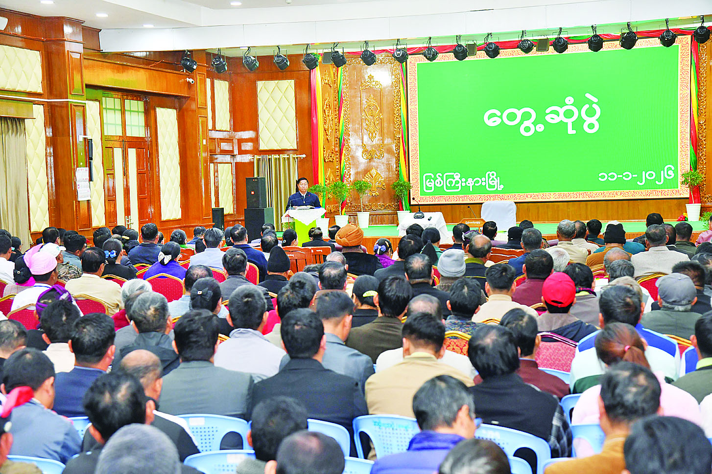 ယင်းနောက် ပြည်ထောင်စုဝန်ကြီးနှင့်အဖွဲ့သည် ကချင်ပြည်နယ်အစိုးရအဖွဲ့ဝင်များ၊ ပြည်နယ်အဆင့်ဌာနဆိုင်ရာ တာဝန်ရှိသူများ၊ ငြိမ်းချမ်းရေးအကျိုးဆောင်အဖွဲ့များ၊ ဘာသာရေးအသင်းအဖွဲ့များ၊ တိုင်းရင်းသားစာပေနှင့် ရိုးရာယဉ်ကျေးမှုအဖွဲ့များ၊ စီးပွားရေးလုပ်ငန်းရှင်များ၊ လူမှုရေးအသင်းအဖွဲ့များနှင့် ဒေသခံပြည်သူများအား ပြည်နယ်အစိုးရ အဖွဲ့ရုံး မေခခန်းမ၌တွေ့ဆုံ၍ ဒေသဖွံ့ဖြိုးတိုးတက်ရေးဆိုင်ရာများ ဆွေးနွေးပြောကြားသည်။