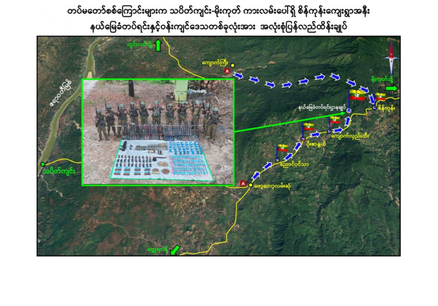 တပ်မတော်စစ်ကြောင်းများက မန္တလေး-သပိတ်ကျင်း- မိုးကုတ် ဆက်သွယ်ရေးလမ်းကြောင်းပေါ်ရှိ စစ်ဗျူဟာအရေးကြီးနေရာများနှင့် နယ်မြေခံတပ်ရင်းအား ပြန်လည်သိမ်းပိုက်ရရှိ