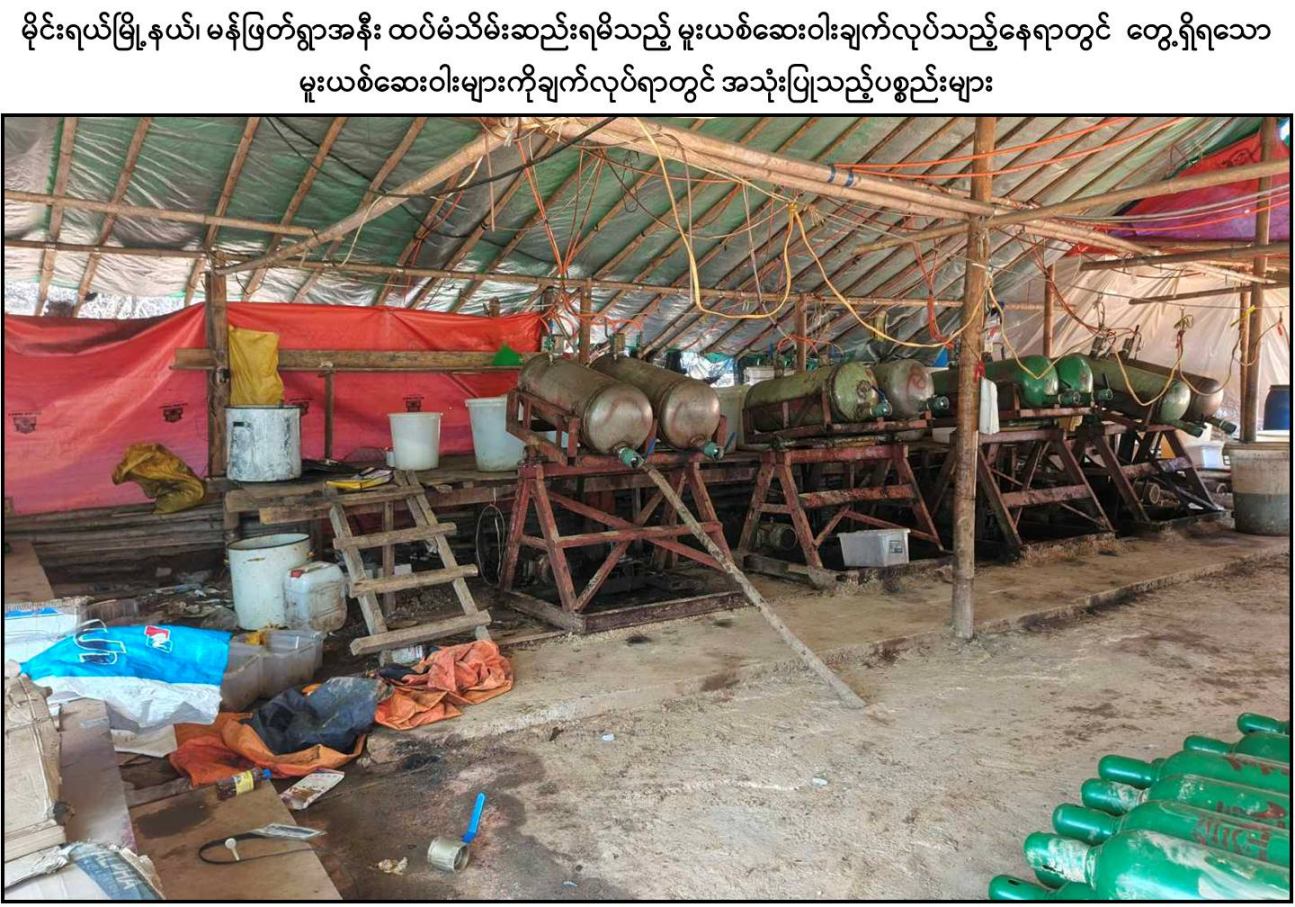 အဆိုပါ သိမ်းဆည်းရမိမှုများနှင့်ဆက်စပ်၍ လုံခြုံရေးပူးပေါင်းအဖွဲ့များက လေကြောင်းကင်းထောက်ခြင်း၊ မြေပြင်သတင်းစုံစမ်းဖော်ထုတ်ခြင်းနှင့် နယ်မြေရှင်းလင်းခြင်းတို့ကို ဆက်လက်ဆောင်ရွက်ခဲ့ရာ ဇန်နဝါရီ ၁၆ ရက် ယနေ့နံနက် ၇ နာရီ ၃၀ မိနစ်ခန့်တွင် ရှမ်းပြည်နယ်(မြောက်ပိုင်း)၊ မိုင်းရယ်မြို့၏ အနောက်တောင်ဘက် ၁၉ ကီလိုမီတာခန့်အကွာ၊ မန်ဖြတ်ကျေးရွာ၏ အနောက်မြောက်ဘက် ၁၅ ကီလိုမီတာခန့်အကွာ၌ မသင်္ကာဖွယ်ရာအဆောက်အအုံများတွေ့ရှိရသဖြင့် သွားရောက်ရှင်းလင်းခဲ့ရာ မူးယစ်ဆေးဝါးချက်လုပ်ရာတွင် အသုံးပြုသည့် အလျား ၂၀ ပေ၊ အနံ ၄၀ ပေရှိအဆောက်အအုံ ၁ လုံး၊ အလျား ၅၀ ပေ၊ အနံ ၂၀ ပေရှိ လူနေတဲ ၁ လုံး၊ မူးယစ်ဆေးဝါးရောစပ်သည့် စတီးဗန်း ၆ ခုပါ အဆောက်အအုံ ၁ လုံး၊ အလျား ၁၂၀ ပေ၊ အနံ ၄၀ ပေရှိ အဆောက်အအုံ ၁ လုံး၊ အခြောက်ခံမွှေစက် ၂ လုံး၊ မူးယစ်ဆေးဝါး အဖြူရောင်အမှုန့်များထားရှိသည့် ဂိုဒေါင် ၁ လုံး၊ အလျား ၁၂၀ ပေ၊ အနံ ၂၀ ပေရှိ လူနေအဆောက်အအုံ ၁ လုံး၊ မီးစက်ကြီး ၅ လုံး၊ Loader ၁ စီး၊ Bulldozer ၁ စီး၊ အပြာရောင် ပေပါအခွံ ၁၀၀ လုံး၊ ပုံးအဖြူရောင် ၅၀ လုံး၊ ဂက်စ်အိုး ၄၀ လုံး၊ စိစစ်ဆဲဓာတုဗေဒပစ္စည်းထည့်ထားသော အိတ် ၅၀ လုံးခန့်တို့အား ထပ်မံတွေ့ရှိသိမ်းဆည်းခဲ့သည်။