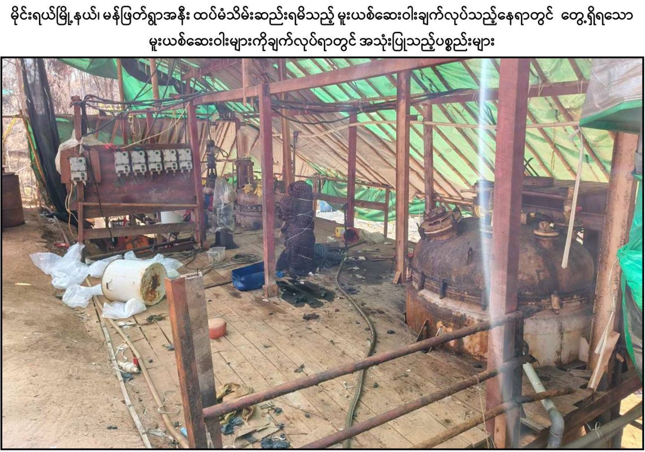 မြန်မာနိုင်ငံအနေဖြင့် မူးယစ်ဆေးဝါးတိုက်ဖျက်ရေးလုပ်ငန်းစဉ်များကို အမျိုးသားရေးတာဝန်တစ်ရပ်အဖြစ်ခံယူ၍ နိုင်ငံတစ်ဝန်းမူးယစ်ဆေးဝါးထုတ်လုပ်မှုနှင့် တရားမဝင်ရောင်းဝယ်မှု တားဆီးကာကွယ်နှိမ်နင်းရေးလုပ်ငန်းများကို အင်တိုက်အားတိုက် စဉ်ဆက်မပြတ်ဆောင်ရွက်လျက်ရှိရာ ၂၀၂၆ ခုနှစ်၊ ဇန်နဝါရီ ၉ ရက်၊ ၁၀ ရက်နှင့် ၁၁ ရက်တို့တွင် ရှမ်းပြည်နယ် (မြောက်ပိုင်း)၊ သီပေါမြို့နယ်နှင့် မိုင်းရယ်မြို့နယ်များအတွင်း အွန်လိုင်းလိမ်လည်လောင်းကစားမှုပြုလုပ်ရာတွင် အသုံးပြုသည့်ပစ္စည်းများနှင့် မူးယစ်ဆေးဝါးချက်လုပ်ရာတွင် အသုံးပြုသည့် ပစ္စည်းကိရိယာအမြောက်အများကို သိမ်းဆည်းရမိခဲ့သည့်သတင်းအား ဇန်နဝါရီ ၁၅ ရက်နေ့တွင်လည်းကောင်း၊ မိုင်းရယ်မြို့၏ အနောက်မြောက်ဘက် ၃၄ ကီလိုမီတာအကွာ၊ နားလင်းကျေးရွာ၏ အရှေ့မြောက်ဘက် ၁၄ ကီလိုမီတာခန့်အကွာတွင် မူးယစ်ဆေးဝါးချက်လုပ်သည့် နေရာများကို ထပ်မံဖမ်းဆီးရမိခဲ့သည့် သတင်းအား ဇန်နဝါရီ ၁၅ ရက်နေ့တွင်လည်းကောင်း အသီးသီးထုတ်ပြန်ပြီးဖြစ်သည်။