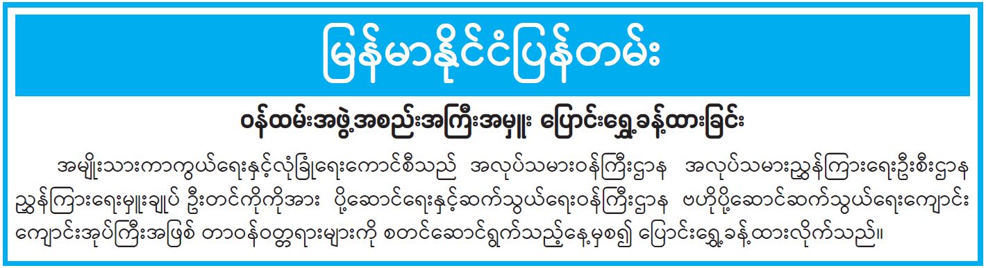 ဦးစီးဌာနနှင့် လုပ်ငန်းများ၏ ကြေညာချက်များ