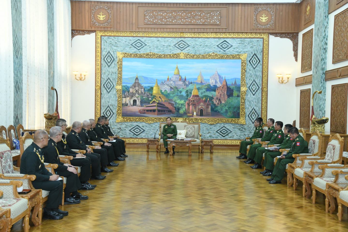နိုင်ငံတော်လုံခြုံရေးနှင့်အေးချမ်းသာယာရေးကော်မရှင်ဒုတိယဥက္ကဋ္ဌ ဒုတိယတပ်မတော်ကာကွယ်ရေးဦးစီးချုပ် ကာကွယ်ရေးဦးစီးချုပ် (ကြည်း) ဒုတိယဗိုလ်ချုပ်မှူးကြီး စိုးဝင်း ထိုင်းဘုရင့်ကြည်းတပ်ဦးစီးချုပ်ရုံး Army Operation Center ၊ Neighboring Countries Coordination Center (NCCC) ဌာန၏ အကြီးအကဲ ဦးဆောင်သည့် ကိုယ်စားလှယ်အဖွဲ့အား လက်ခံတွေ့ဆုံ