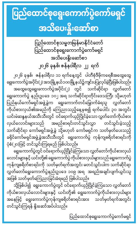 ပြည်ထောင်စုရွေးကောက်ပွဲကော်မရှင် အသိပေးနှိုးဆော်စာ