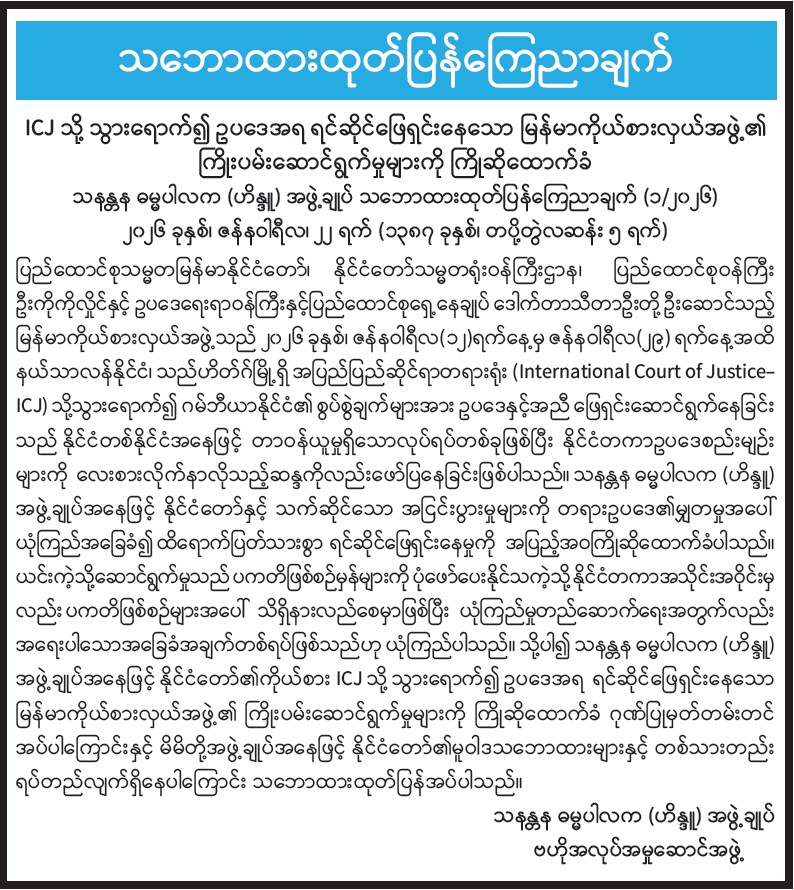 သနန္တန ဓမ္မပါလက (ဟိန္ဒူ) အဖွဲ့ချုပ် သဘောထားထုတ်ပြန်ကြေညာချက် (၁/၂၀၂၆)