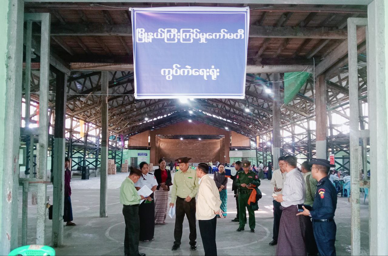 ဧရာဝတီတိုင်းဒေသကြီးလမ်းပန်းဆက်သွယ်ရေးဝန်ကြီး ပြည်သူများ ဆန္ဒမဲပေးနေမှုအား ကြည့်ရူအားပေး