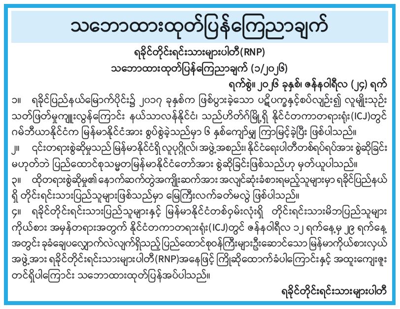 သဘောထားထုတ်ပြန်ကြေညာချက်