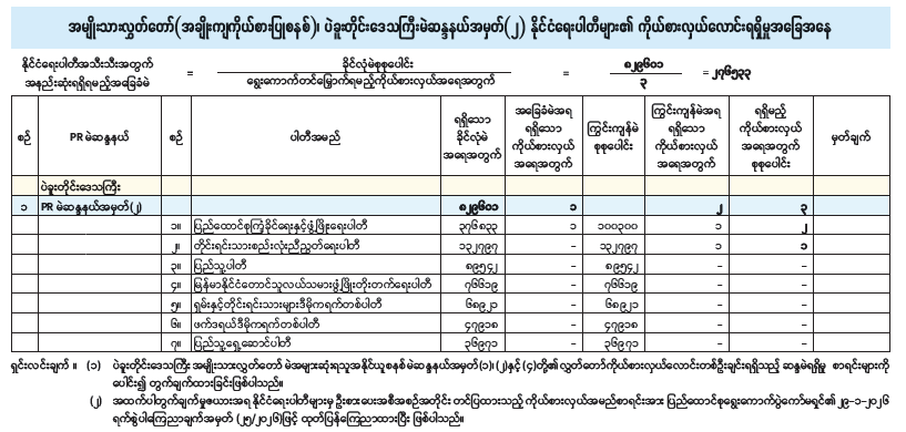အမျိုးသားလွှတ်တော်(အချိုးကျကိုယ်စားပြုစနစ်)၊ ပဲခူးတိုင်းဒေသကြီးမဲဆန္ဒနယ်အမှတ်(၂) နိုင်ငံရေးပါတီများ၏ ကိုယ်စားလှယ်လောင်းရရှိမှုအခြေအနေ