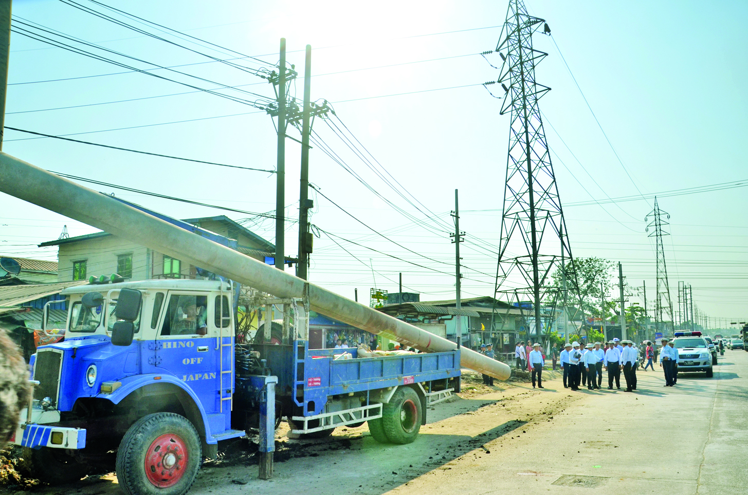ရွှေပြည်သာမြို့နယ် ကမ်းသာယာလမ်းဆုံအနီး ၆၆ ကေဗွီ လှော်ကား - ရွာမ (သံမဏိ) ဓာတ်အားလိုင်း ပြောင်းရွှေ့တည်ဆောက်
