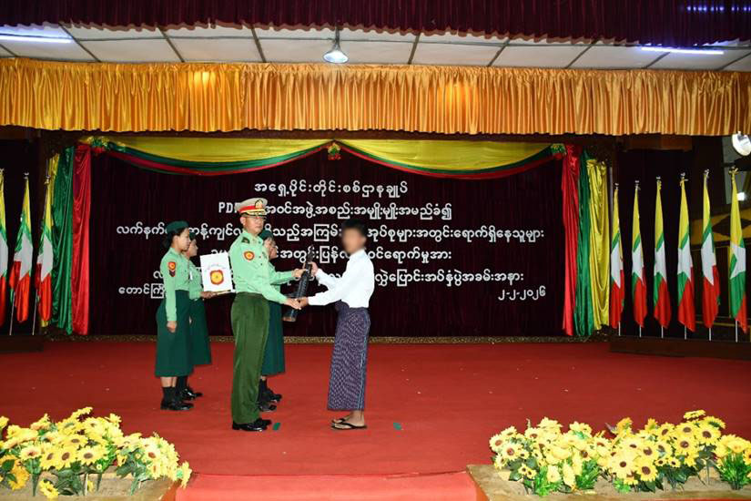 နိုင်ငံတော်အစိုးရသည် PDF အပါအဝင် အဖွဲ့အစည်းအမျိုးမျိုးအမည်ခံ၍ လက်နက်ကိုင်ဆန့်ကျင်လျက်ရှိသည့် အဖွဲ့အစည်းများအတွင်း ရောက်ရှိနေသူများအား ဥပဒေဘောင်အတွင်းသို့ ပြန်လည်ဝင်ရောက်ရန် ဖိတ်ခေါ်၍ ဥပဒေဘောင်အတွင်းသို့ ပြန်လည်ဝင်ရောက်လာကြသူများကိုလည်း လိုအပ်သည့် ကူညီပံ့ပိုးမှုများ ဆောင်ရွက်ပေးလျက်ရှိရာ နိုင်ငံတော်နှင့် တပ်မတော်၏ ငြိမ်းချမ်းရေးလုပ်ငန်းစဉ်များကို နားလည်သဘောပေါက်လာသည့် KNDF အဖွဲ့မှ အမျိုးသား ၃ ဦး၊ အင်းလေး PDF အဖွဲ့မှ အမျိုးသား ၁ ဦး၊ ရှမ်း(တောင်)PDF အဖွဲ့မှ အမျိုးသား ၂ ဦး၊ DPLA အဖွဲ့မှ အမျိုးသား ၁၂ ဦး၊ အမျိုးသမီး ၆ဦး၊ စုစုပေါင်းအမျိုးသား ၁၈ ဦးနှင့် အမျိုးသမီး ၆ ဦး တို့သည် လက်နက်၊ ခဲယမ်းများနှင့်အတူ ယနေ့တွင် ဥပဒေဘောင်အတွင်းသို့ ဝင်ရောက်လာကြသည်။