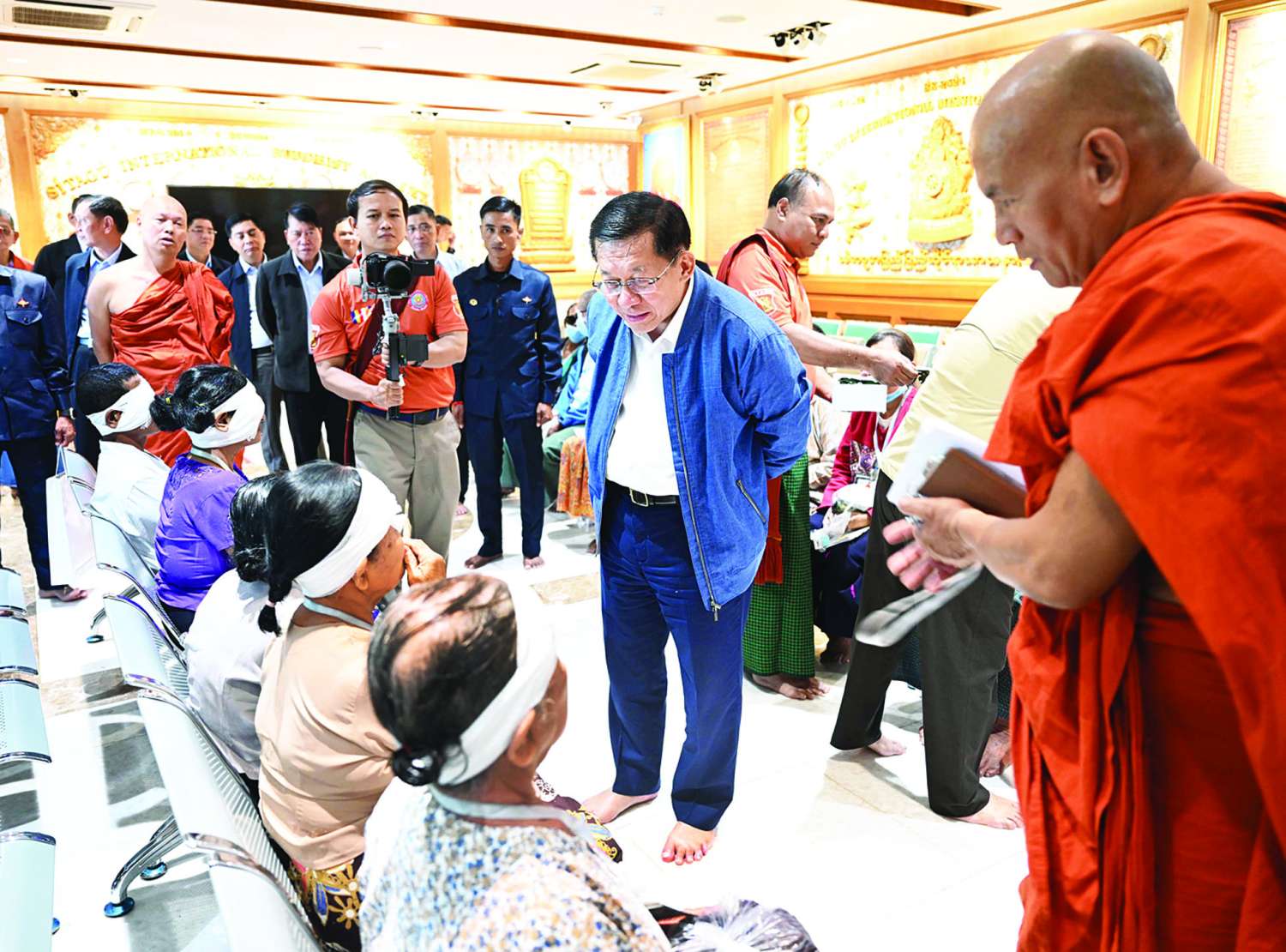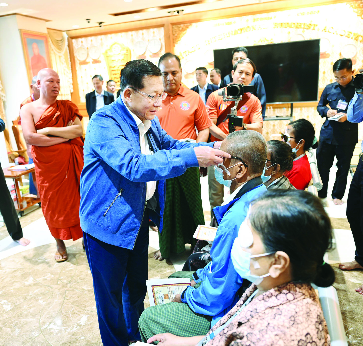 ဦးစွာ နိုင်ငံတော်ယာယီသမ္မတ နိုင်ငံတော်လုံခြုံရေးနှင့်အေးချမ်းသာယာရေးကော်မရှင်ဥက္ကဋ္ဌနှင့် ကော်မရှင်အဖွဲ့ဝင် နိုင်ငံတော်ဝန်ကြီးချုပ်၊ ကော်မရှင်အတွင်းရေးမှူးတို့သည် သီတဂူစက္ခုဒါနဆေးရုံတွင် လာရောက်ကုသခွဲစိတ်မှုခံယူထားသည့် ပြည်သူများအား မျက်မှန်များ တပ်ဆင်ပေးပြီး ရင်းရင်းနှီးနှီးနှုတ်ဆက်အားပေးသည်။
