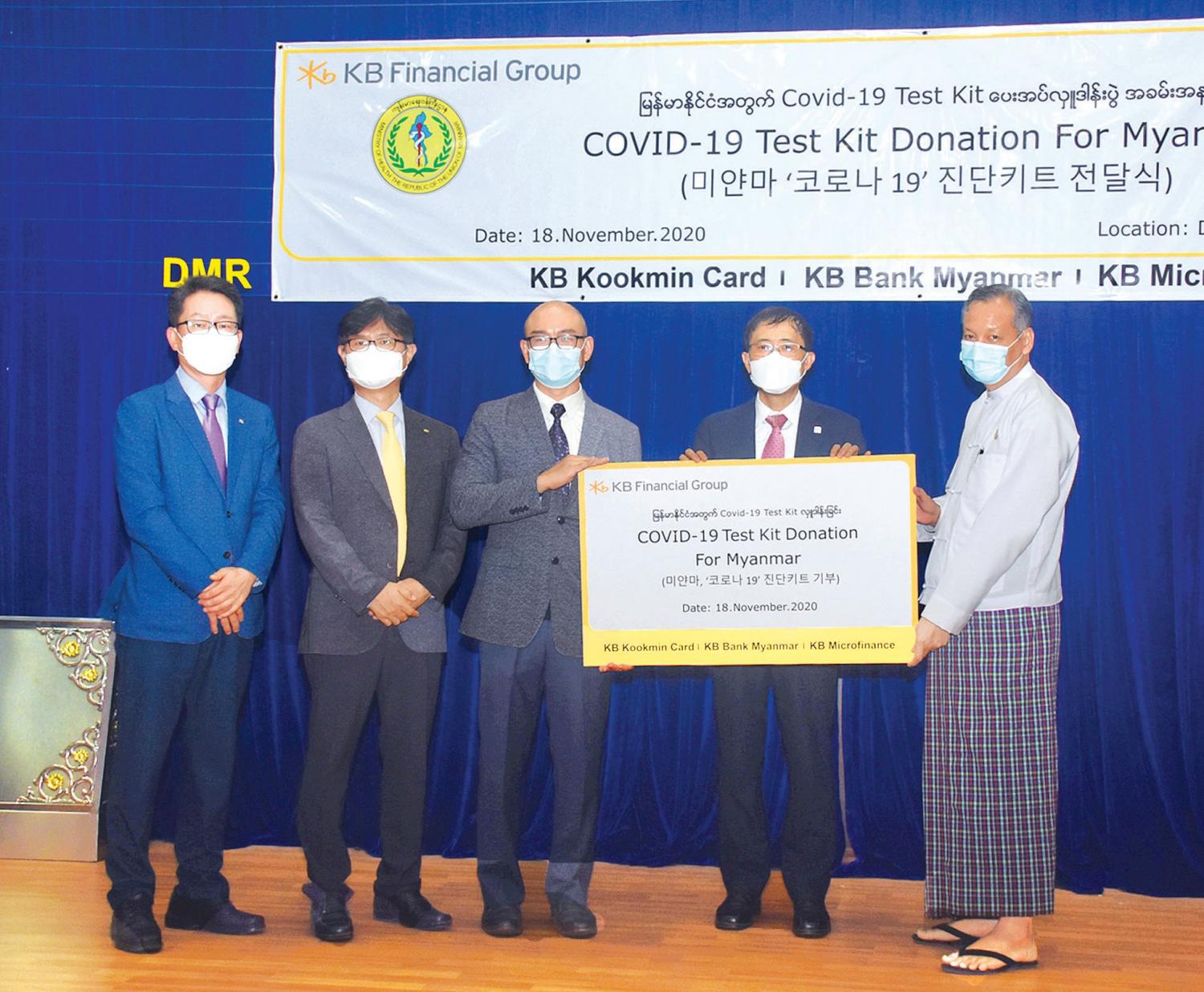 ကျန်းမာရေးနှင့်အားကစားဝန်ကြီးဌာနသို့ COVID-19 Test Kits များ ပေးအပ်လှူဒါန်းရာတွင် KB Financial Group မှ အမေရိကန်ဒေါ်လာ ၁၂၄၂၅ ဒေါ်လာ နှင့်ညီမျှသော COVID-19 Test Kits ၂၅၀၀ နှင့်  Industrial Bank of Korea မှ အမေရိကန်ဒေါ်လာ ၆၇၉၄ ဒေါ်လာနှင့်  ညီမျှသော COVID-19 Test Kits ၁၀၀၀ ကို   လှူဒါန်းခဲ့ခြင်းဖြစ်ကြောင်း သိရသည်။