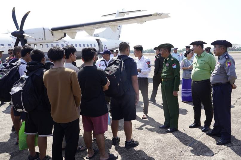ယနေ့တွင် မြိတ်မြို့သို့ ရောက်ရှိလာသည့် မြန်မာနိုင်ငံသားများအား ကမ်းရိုးတန်းဒေသတိုင်းစစ်ဌာနချုပ် တိုင်းမှူး ဗိုလ်ချုပ်ကျော်ကျော်ဟန်နှင့် တာဝန်ရှိသူများ၊ မြိတ် ခရိုင်/မြို့နယ်ဌာနဆိုင်ရာ တာဝန်ရှိသူများက သွားရောက်တွေ့ဆုံ၍ စားသောက်ဖွယ်ရာများ ပေးအပ်ခဲ့ကြောင်းနှင့် အဆိုပါအဖွဲ့များအား ညနေပိုင်းတွင် တပ်မတော်လေယာဉ်ဖြင့် ရန်ကုန်မြို့သို့ ဆက်လက်ပို့ဆောင်ပေးခဲ့ကြောင်း သိရှိရသည်။