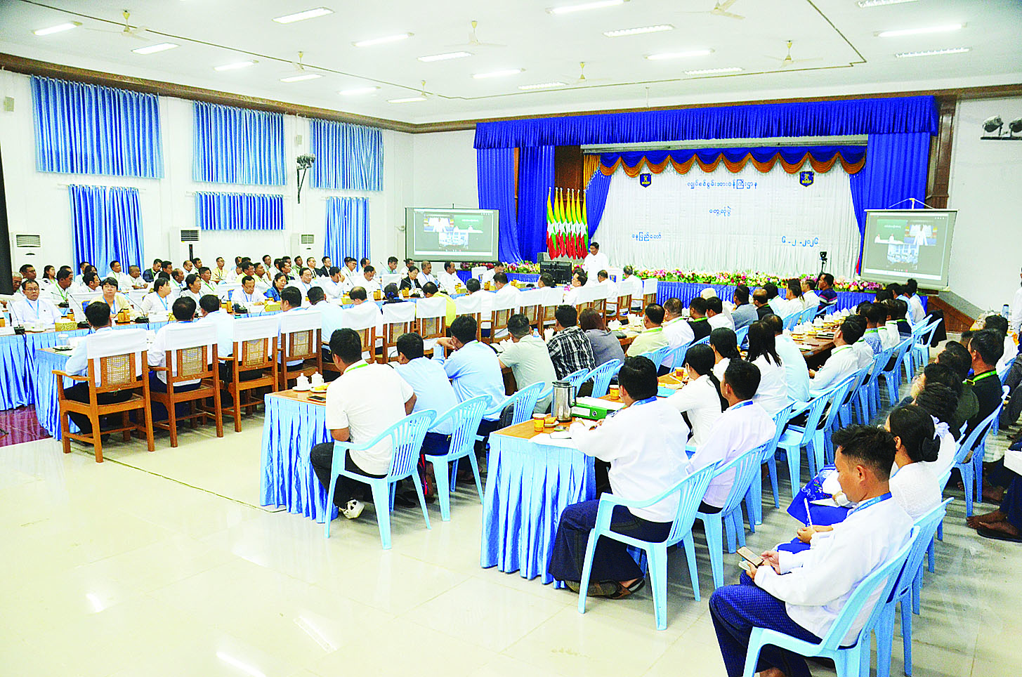 ထို့နောက် ညွှန်ကြားရေးမှူးချုပ်နှင့် ဦးဆောင်ညွှန်ကြားရေးမှူးများက သက်ဆိုင်ရာလုပ်ငန်းကဏ္ဍအလိုက် ရှင်းလင်းတင်ပြကြပြီး တိုင်းဒေသကြီး / ပြည်နယ်များမှ သယံဇာတရေးရာဝန်ကြီးများ၊ စက်မှုဇုန်များမှ တာဝန်ရှိသူများ၊ စီးပွားရေးလုပ်ငန်းရှင်များက စက်မှုနှင့် စီးပွားရေးလုပ်ငန်းများ သို့ သတ်မှတ်နှုန်းထားအသစ်ဖြင့် ဓာတ်အားခကောက်ခံဆောင်ရွက်မည့်အခြေအနေများနှင့် ဓာတ်အားခတိုးမြှင့်ကောက်ခံမှုအပေါ် အားသာချက်/အားနည်းချက်များ၊ ဖြစ်ပေါ်လာသည့် အခက်အခဲများကို တင်ပြဆွေးနွေးကြသည်။