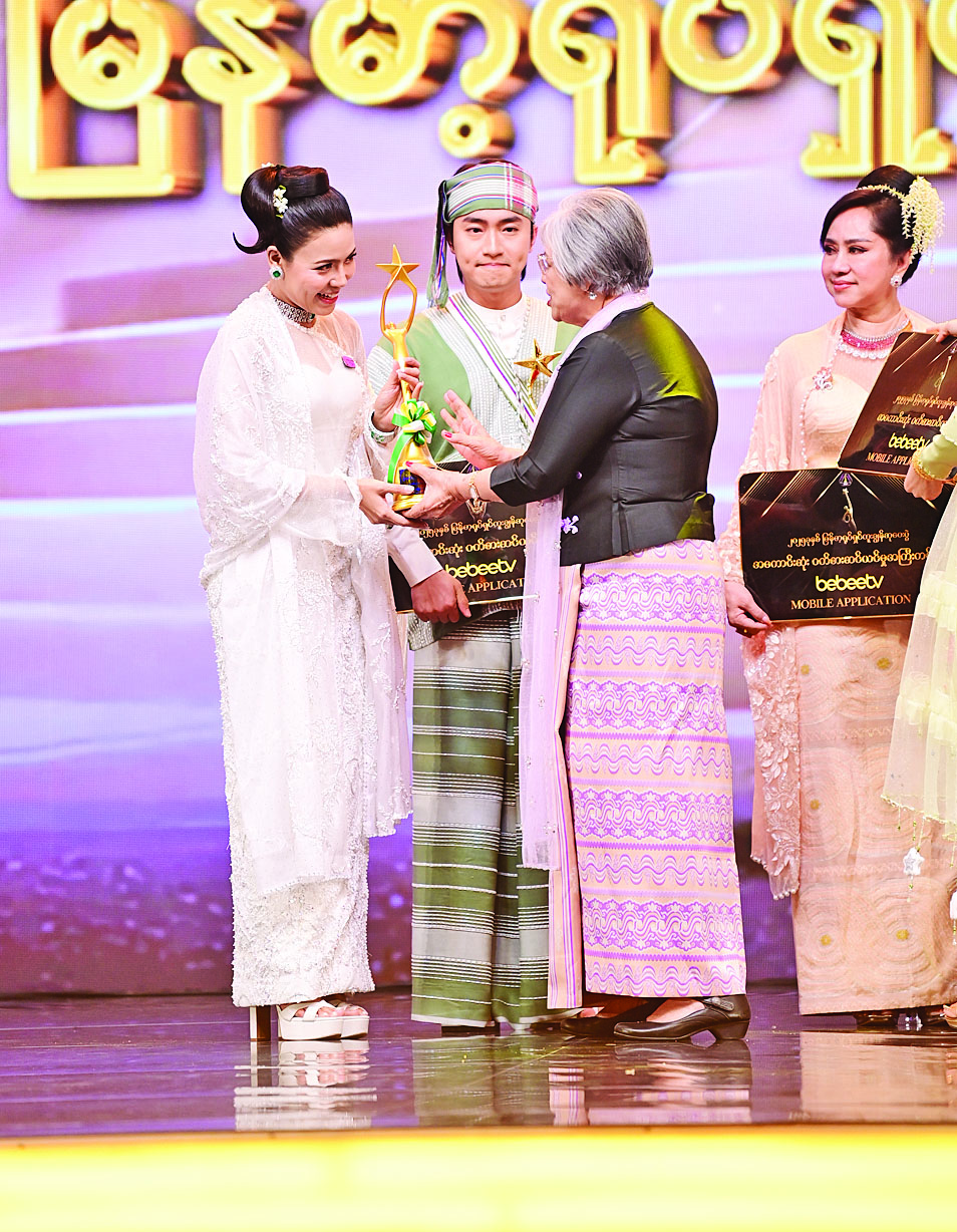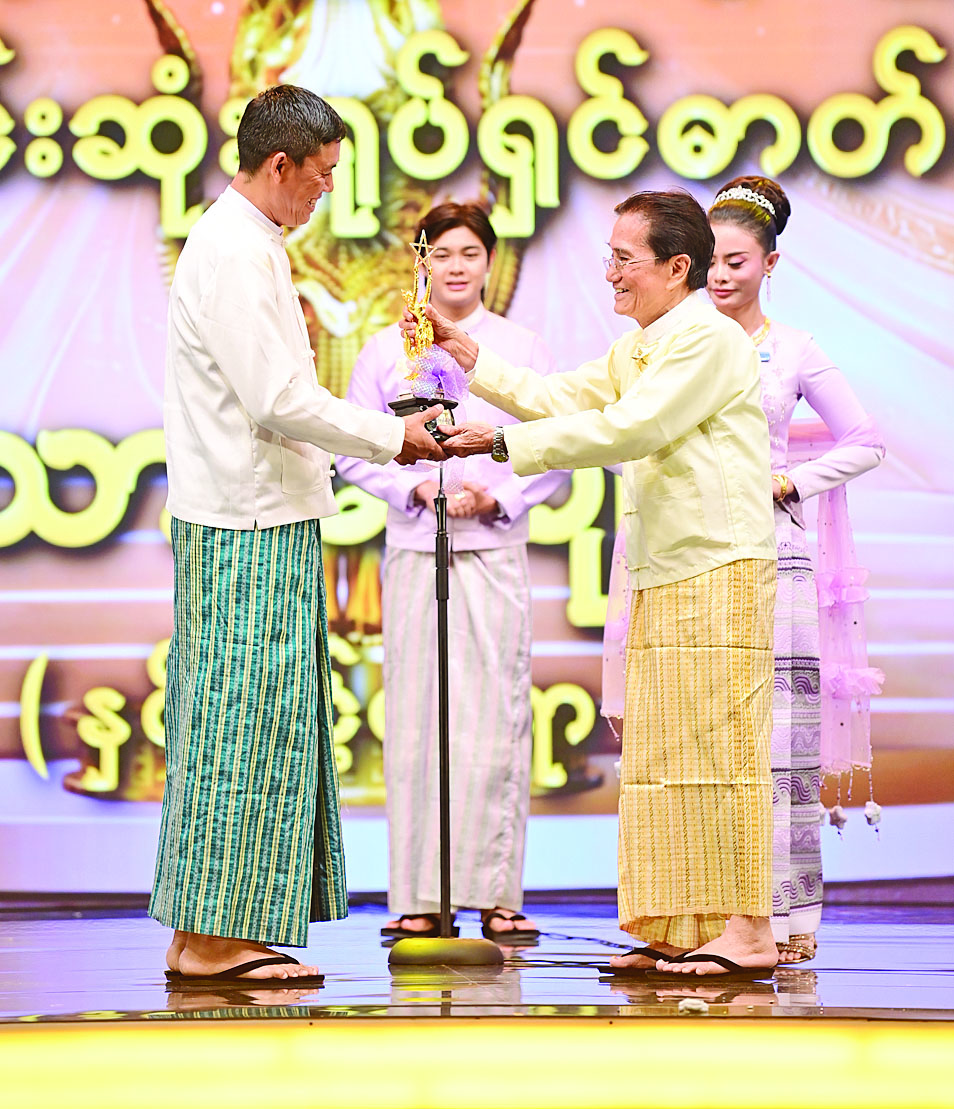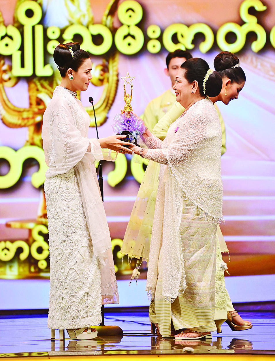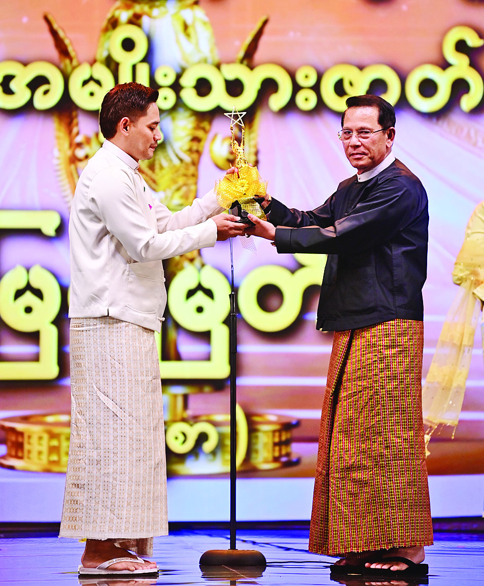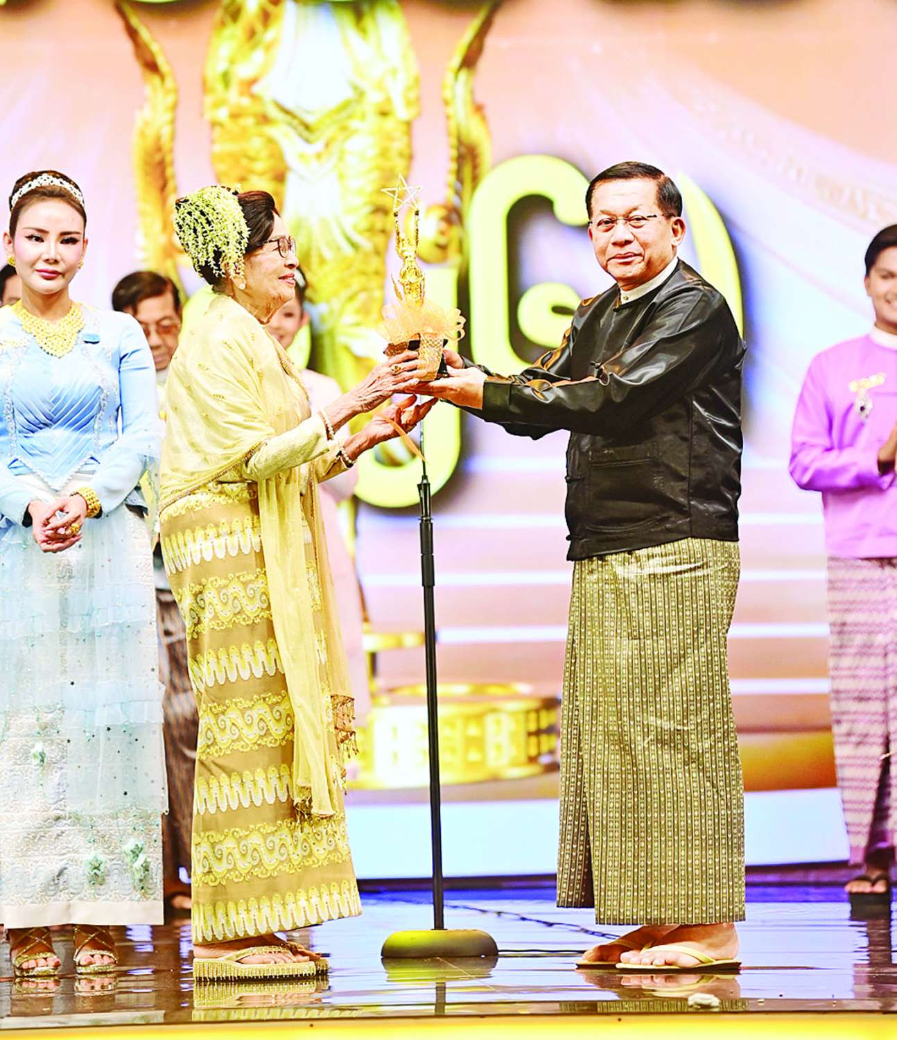 ဆက်လက်၍ နိုင်ငံတော်ယာယီသမ္မတ နိုင်ငံတော်လုံခြုံရေးနှင့် အေးချမ်းသာယာရေးကော်မရှင်ဥက္ကဋ္ဌက မြန်မာနိုင်ငံရုပ်ရှင်အစည်းအရုံးနှင့် အနုပညာရှင်၊ အတတ်ပညာရှင်များအပါအဝင် ရုပ်ရှင်လောကသားအားလုံးက လှိုက်လှဲဂုဏ်ယူစွာ ချီးမြှင့်သည့် ရုပ်ရှင်တစ်သက်တာထူးချွန်ဆုရရှိကြသော ဦးဌေးအောင် (ဆွေဗမာ)၊ သရုပ်ဆောင် ဒေါ်ခင်လေးဆွေနှင့် ဒါရိုက်တာ အကယ်ဒမီ ဦးကြည်စိုးထွန်းတို့ကို ဆုများပေးအပ်ချီးမြှင့်ပြီး မှတ်တမ်းတင်စုပေါင်းဓာတ်ပုံရိုက်ကြသည်။