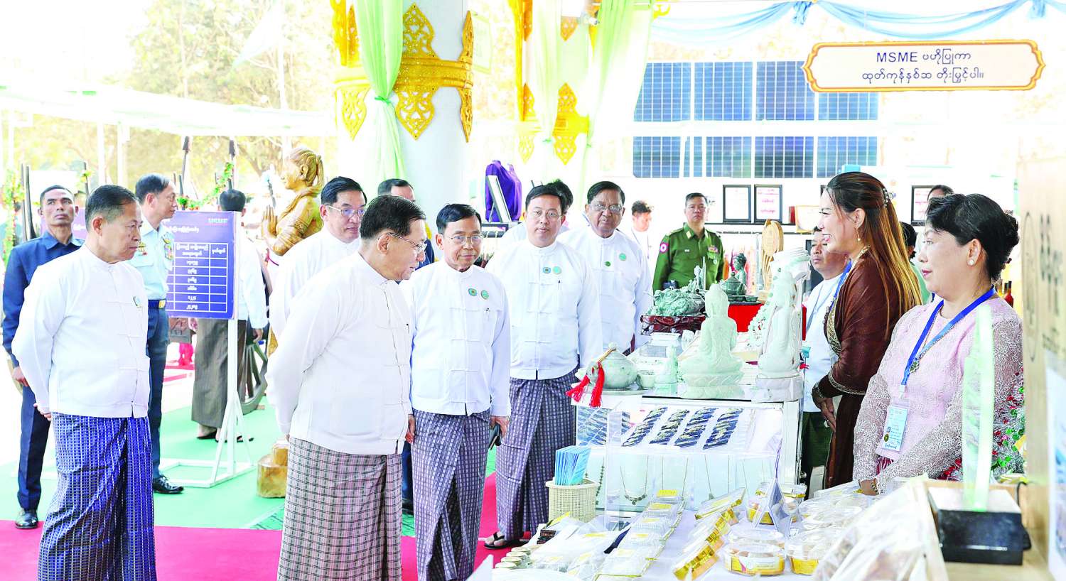 ၂၀၂၆ ခုနှစ် (၇၉) နှစ်မြောက် ပြည်ထောင်စုနေ့အထိမ်းအမှတ် ပြည်ထောင်စုအဆင့် MSME ထုတ်ကုန်ပြပွဲနှင့် ဈေးရောင်းပွဲတော်ဖွင့်ပွဲအခမ်းအနားကို ယနေ့နံနက်ပိုင်းတွင် နေပြည်တော်ရင်ပြင်၌ ကျင်းပပြုလုပ်ရာ ပြည်ထောင်စုသမ္မတမြန်မာနိုင်ငံတော်ယာယီသမ္မတ နိုင်ငံတော်လုံခြုံရေးနှင့်အေးချမ်းသာယာရေးကော်မရှင်ဥက္ကဋ္ဌ ဗိုလ်ချုပ်မှူးကြီး မင်းအောင်လှိုင် တက်ရောက်ချီးမြှင့်ဖွင့်လှစ်ပေးသည်။