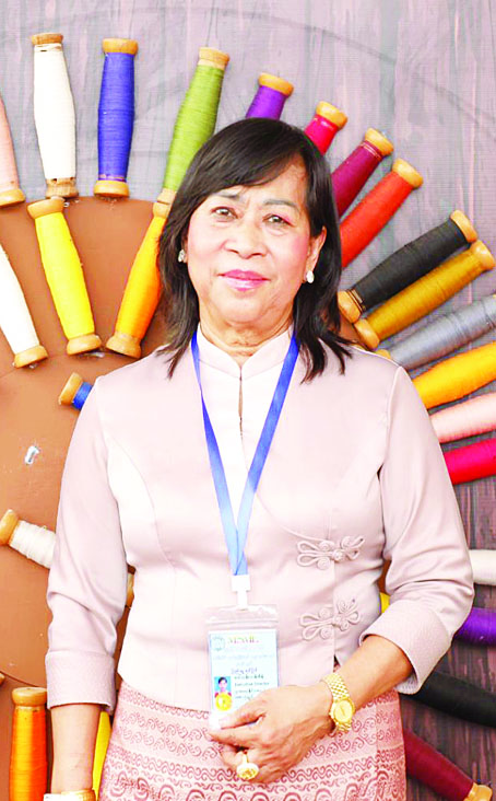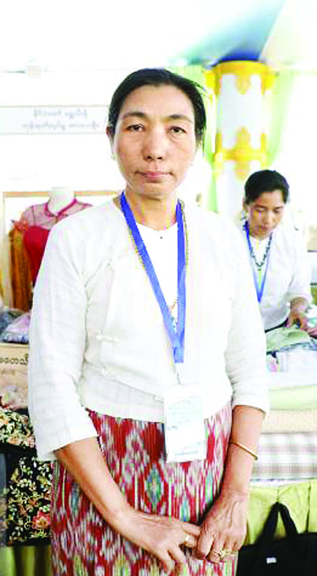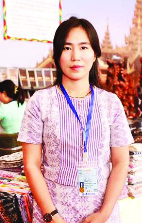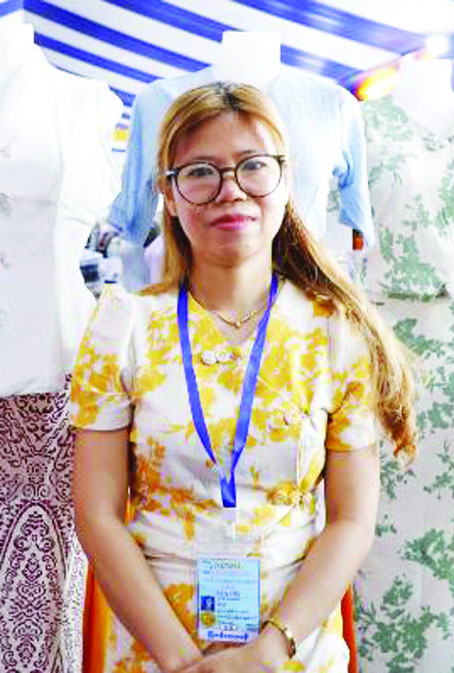 ရန်ကုန်တိုင်းဒေသကြီး ကိုယ်စားပြုနေနဲ့ လာရောက်ပြသတာပါ။ မြန်မာ့ရိုးရာ ချည်ထည်လုပ်ငန်းပါ၊ ကျွန်မကိုယ်တိုင်ပဲ ဒီဇိုင်းကို ထုတ်ပါ တယ်၊ Cutting ကအစ ကျွန်မကိုယ်တိုင် သေချာလုပ်ထားတာပါ။ အဲဒါကို ပြသချင်တဲ့အတွက် ပါဝင်ပြသဖြစ်တာပါ။ Handmade အနေနဲ့ ကျွန်မတို့ အဆင့်ဆင့်လုပ်တာပါ။ ကုန်ကြမ်းကို အင်းလေးကနေ ယူထားတာပါ။ တစ်ခါတလေကျရင် ကျွန်မတို့ ကုန်ကြမ်းမှာယူတဲ့အခါ အခက်အခဲနည်းနည်းရှိတယ်။ အဲဒီလိုအခက်အခဲလေးတွေကြောင့် ဈေးနှုန်းမှာငါးရာ၊ တစ်ထောင်ကွာသွားတာရှိပါတယ်။ ကျန်တဲ့အခက်အခဲတော့ မရှိပါဘူး။ မြန်မာ့ရိုးရာချည်ထည်ကို မြန်မာမိန်းကလေးတွေ အတွက် ထုတ်လုပ်ထားတယ်ဆိုတဲ့ ကျွန်မတို့ရဲ့ အဓိကရည်ရွယ်ချက်ကို ဒီပြပွဲက အများကြီးအထောက်အကူပြုပါတယ်။ ကျွန်မတို့လို MSME လုပ်ငန်းတွေက ဒီလိုနိုင်ငံတော်ရဲ့ အားပေးမှုမပါရင် ကျွန်မတို့ကို ဘယ်သူမှမသိဘူးလေ။ အရင်တုန်းက ကျွန်မတို့ဆိုင်မှာ လုပ်တာထက်စာရင် ရောင်းအားကအစ အများကြီးအဆင်ပြေပါတယ်။