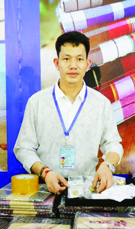 ပဲခူးတိုင်းဒေသကြီးကိုယ်စားပြု ထုတ်ကုန်အနေနဲ့ အခုပြပွဲနဲ့ဆိုရင် လေးနှစ်မြောက် MSME လာရောက်ပြသတာဖြစ်ပါတယ်။ လက်ရှိမှာကတော့ ပြည်တွင်းချည် နှစ် ၈၀ ချည်ကိုပဲ အဓိကထားထုတ်ပြီးတော့ နိုင်ငံခြားချည်နှစ် ၁၀၀ နဲ့ ပေါင်းပြီး Collaborate လုပ်ပြီးတော့ ဒီဇိုင်း အသစ်ထုတ်ထားတာ ဖြစ်ပါတယ်။ မနှစ်ကတော့ One Region One Product (OROP) အနေနဲ့ ဝင်ပြိုင်ခဲ့ပါတယ်။ အခုလိုထုတ်ကုန်တွေ ပြသခွင့်ရတဲ့အတွက်ကြောင့် အကျိုးကျေးဇူးအများကြီးရရှိပါတယ်။ ဘာလို့လဲဆိုတော့ ဒီမှာလုပ်ငန်းရှင်တွေအားလုံး လာရောက်စုစည်း တယ်၊ ပြီးတော့ တစ်နေရာတည်းမှာပဲ Client တွေ အများကြီး တွေ့ရတယ်။ ဝယ်ယူသုံးစွဲသူတွေဘက်ကလည်း ထုတ်ကုန်အစစ်အမှန်၊ ပစ္စည်းရဲ့ အရည်အသွေးကို တိုက်ရိုက်ကြည့်ပြီးတော့ တိုက်ရိုက်ဝယ်ယူခွင့်ရတယ်။ ဒါကြောင့်မို့လို့ ဈေးကွက်လည်းရပါတယ်။