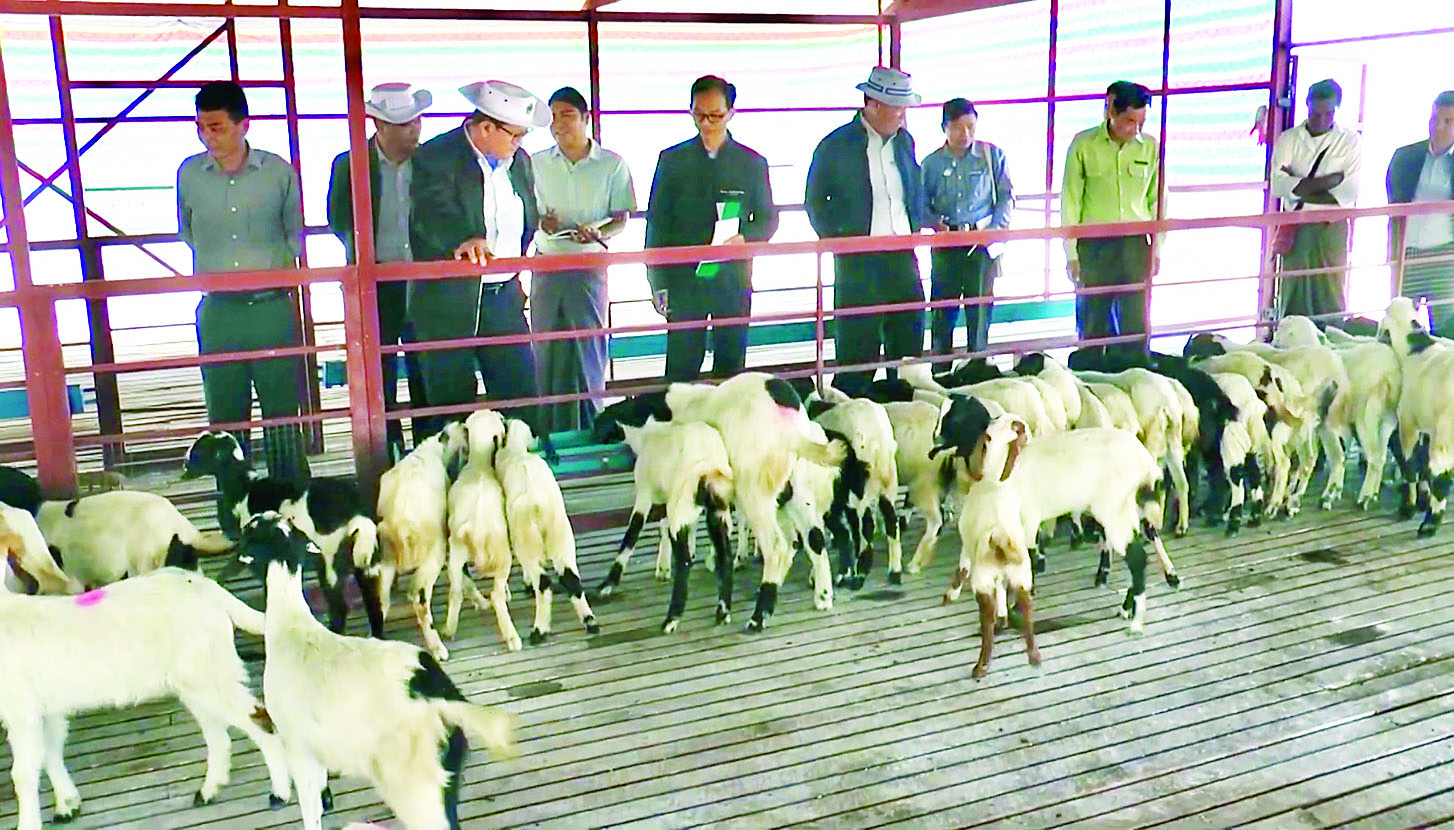 ဦးစွာ တာဝန်ရှိသူများက ဒေသဆိတ် (ထိန်စမ်း) ၁ဝ၇ ကောင် မွေးမြူထားရှိမှု၊ တိရစ္ဆာန်အစာပင် နေဗီယာ တစ်ဧက၊ နှံစားပြောင်း နှစ်ဧက၊ မတ်ပဲ တစ်ဧက စိုက်ပျိုးခြင်း၊ တိရစ္ဆာန်အစာထုတ်လုပ်မှု ထားရှိမှုများကို ရှင်းလင်းတင်ပြရာ ဒုတိယဝန်ကြီးက ဒေသဆိတ် မွေးမြူထားရှိမှုများကို လိုက်လံကြည့်ရှု စစ်ဆေးပြီး အစာကျွေးမွေးမှု၊ အာဟာရပြည့်ဝစေမှုအပါအဝင် မွေးမြူမှုစနစ်များနှင့် ရောဂါထိန်းချုပ်ကာကွယ်ရေးလုပ်ငန်းများကို မွေးမြူထုတ်လုပ်မှုအဆင့်ဆင့်တိုင်းကို အလေးထားဆောင်ရွက်သွားရန် လိုကြောင်း မှာကြားသည်။