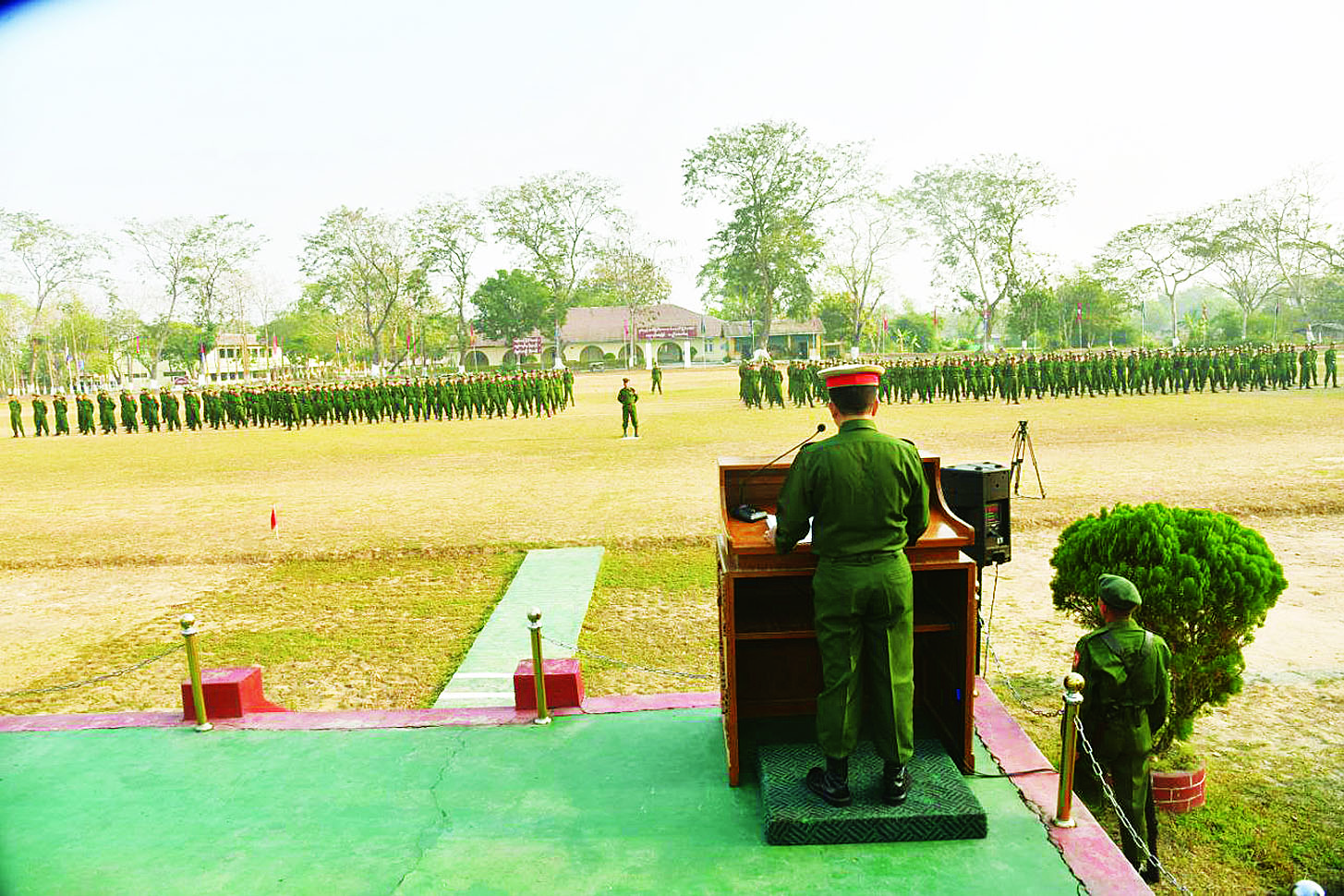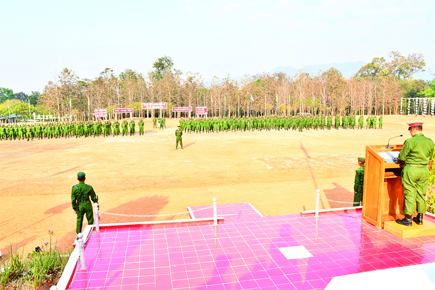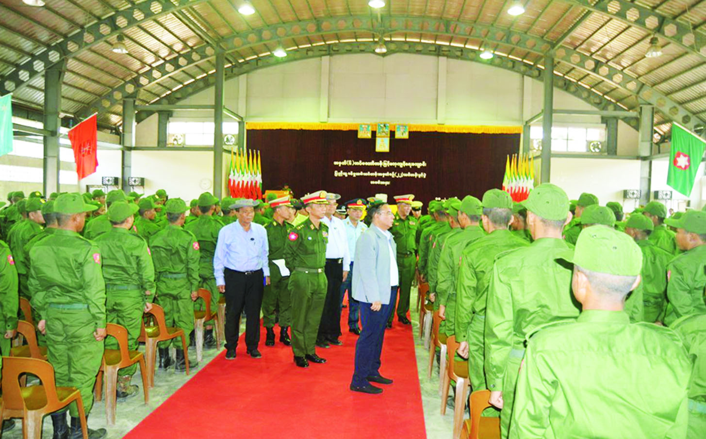 နိုင်ငံတော်ကာကွယ်ရေးနှင့် လုံခြုံရေးတာဝန်ထမ်းဆောင်နိုင်ရန်အတွက် ပြည်သူ့စစ်မှုထမ်းသင်တန်းအမှတ်စဉ် (၂၂) တွင် ပါဝင်တက်ရောက်ကြမည့် အရည်အချင်းကိုက်ညီသူ နိုင်ငံ့သားကောင်းများသည် သက်ဆိုင်ရာတိုင်းစစ်ဌာနချုပ်နယ်မြေများရှိ သင်တန်းကျောင်းအသီးသီးသို့ ရောက်ရှိ၍ လိုအပ်သည့်ကြိုတင်ပြင်ဆင်မှုများကို ဆောင်ရွက်ခဲ့ကြသည်။ ယနေ့နံနက်ပိုင်းတွင် အဆိုပါသင်တန်းကျောင်းအသီးသီး၌ ပြည်သူ့စစ်မှုထမ်းသင်တန်းအမှတ်စဉ် (၂၂) သင်တန်းဖွင့်ပွဲများ ပြုလုပ်ကြသည်။ သင်တန်းဖွင့်ပွဲများတွင် သင်တန်းကျောင်းများအလိုက် ကျောင်းအုပ်ကြီးများက သင်တန်းဖွင့်အမှာစကားများ ပြောကြားကြသည်။