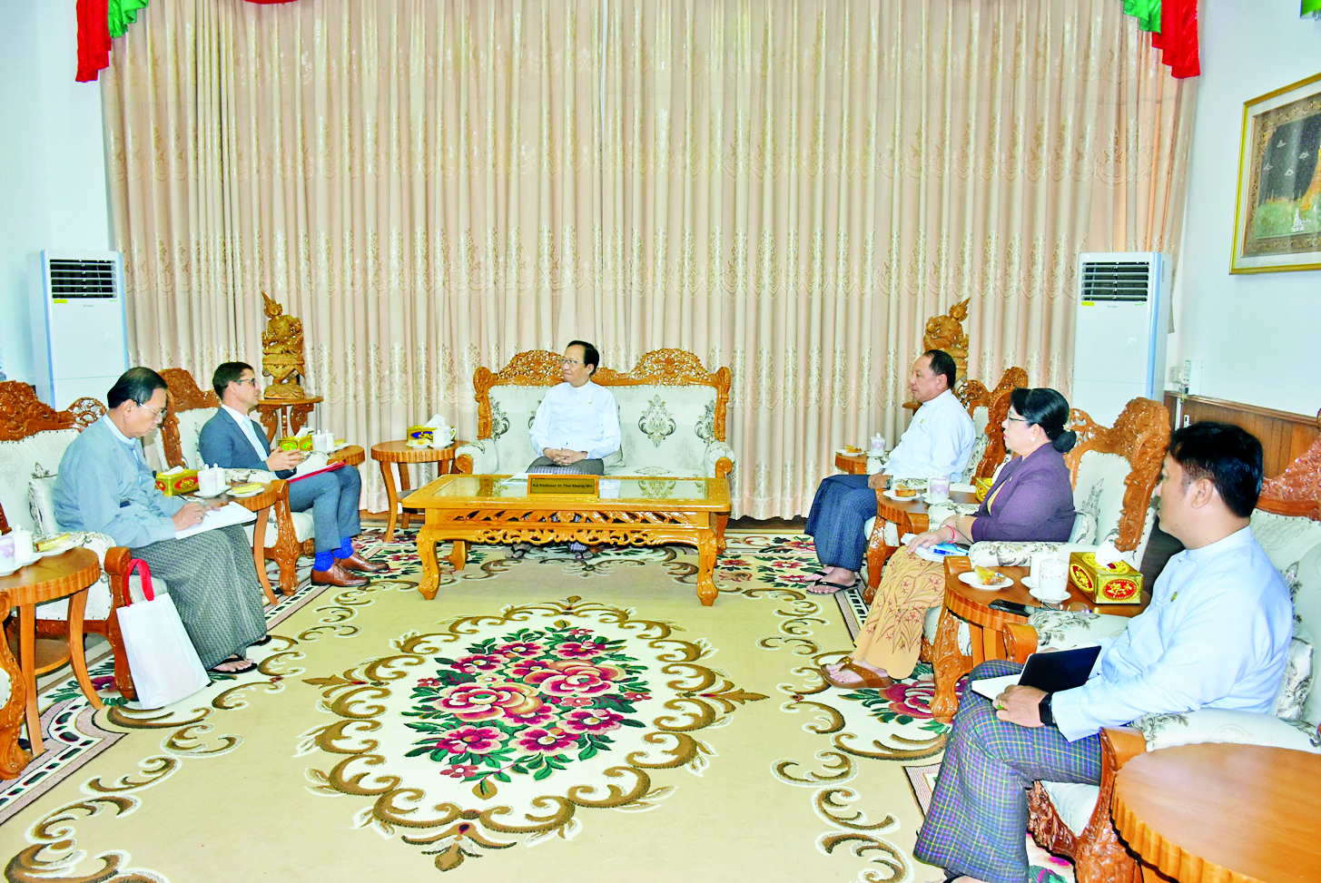 ပြည်ထောင်စုဝန်ကြီး ဒေါက်တာသက်ခိုင်ဝင်း အပြည်ပြည်ဆိုင်ရာကြက်ခြေနီကော်မတီ၏ ဌာနေကိုယ်စားလှယ် မစ္စတာ အားနော့ဒီဘေ့ခ်အား လက်ခံတွေ့ဆုံ
