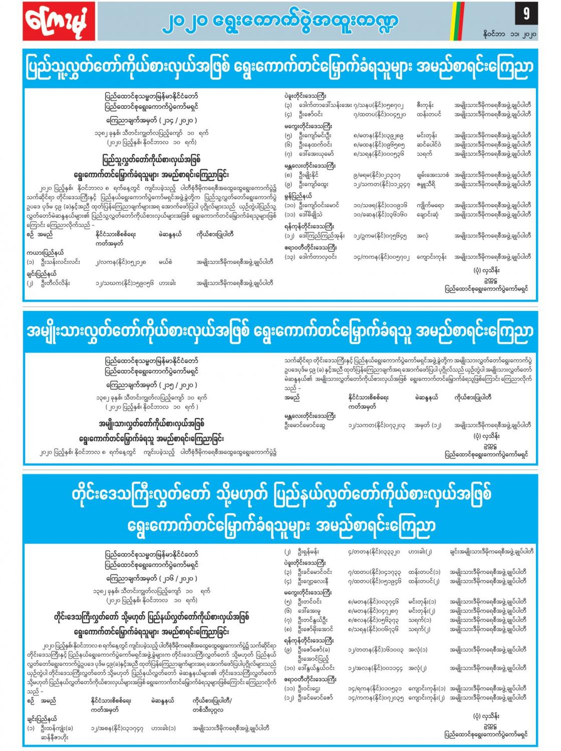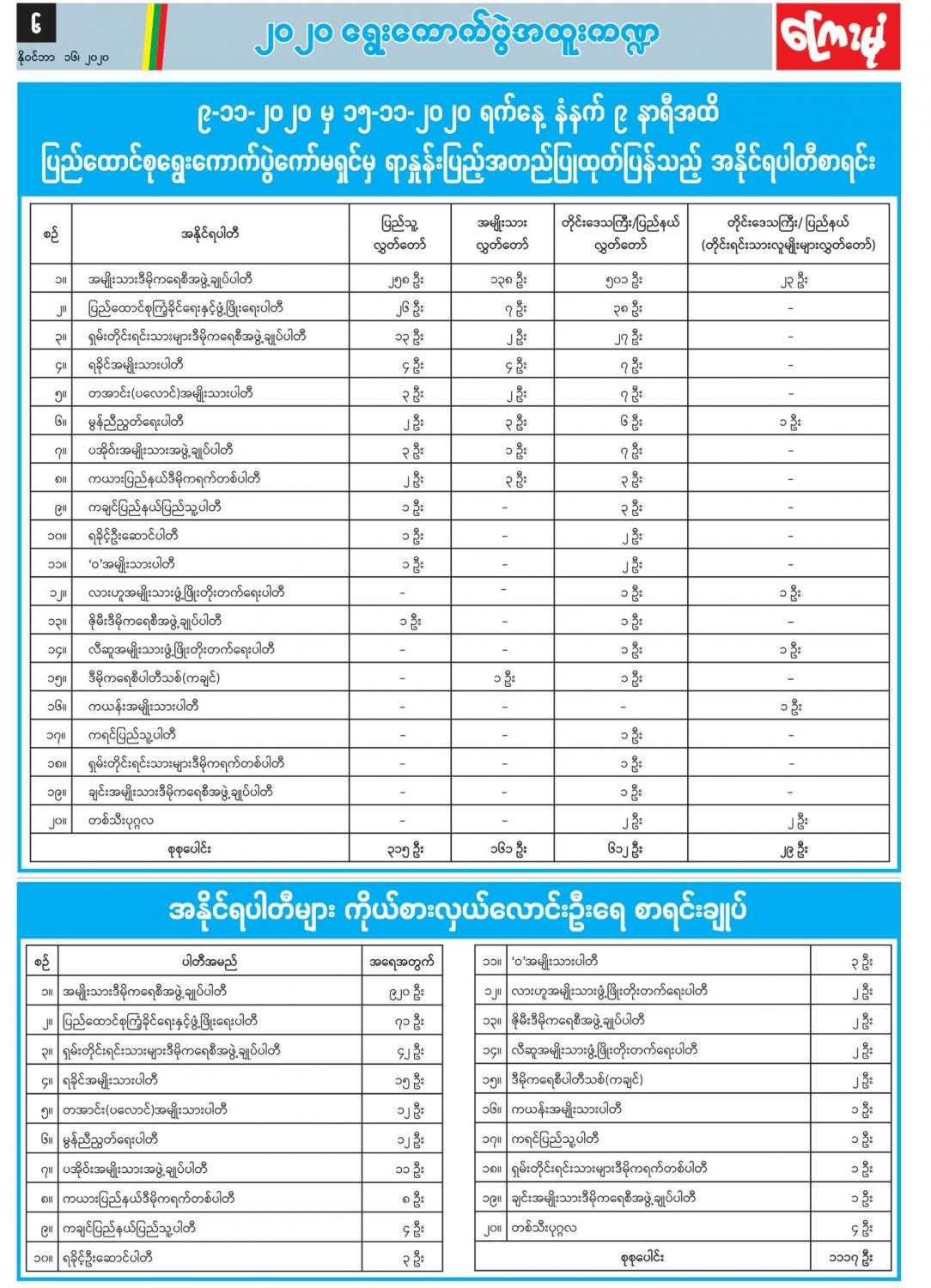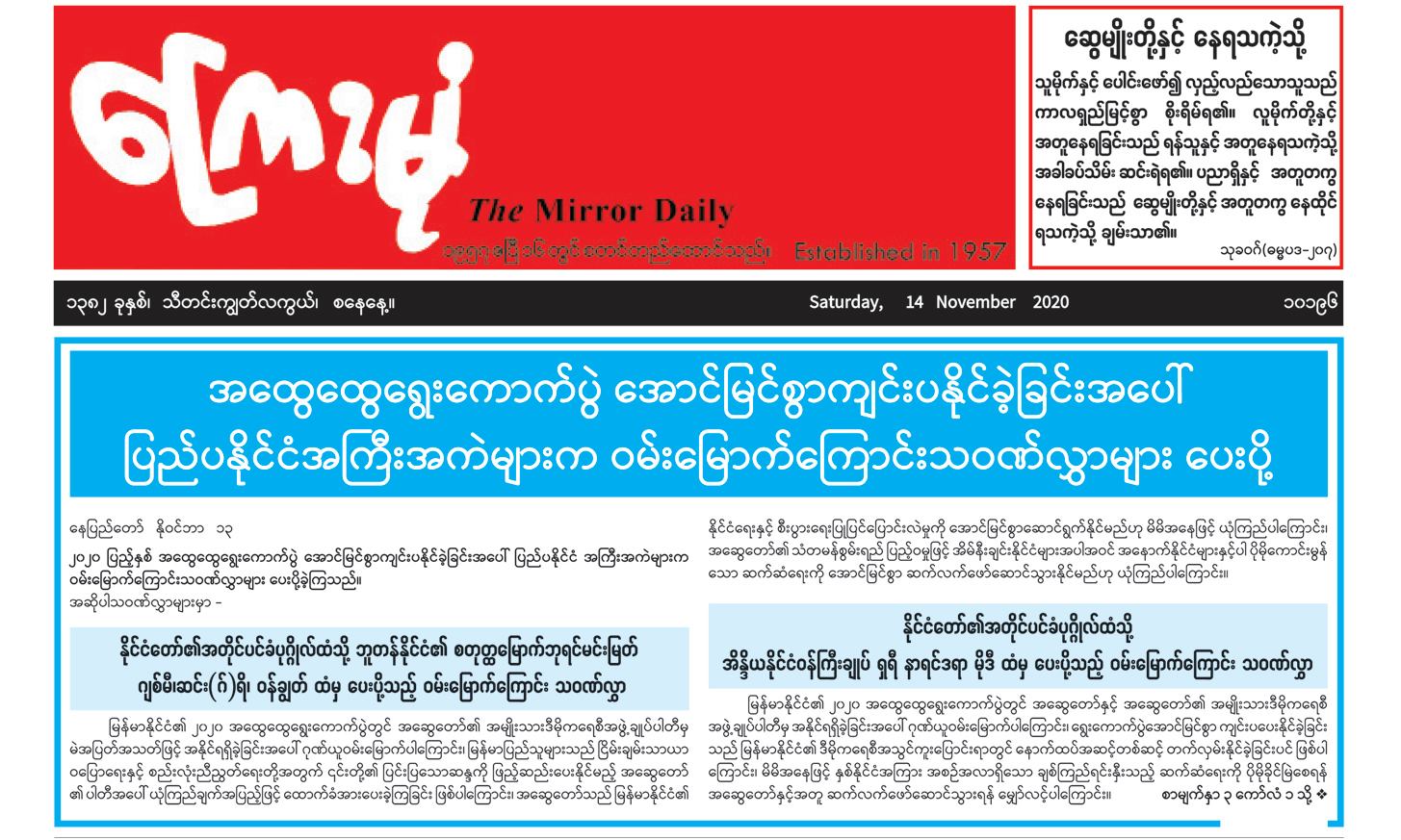 ၂၀၂၀ ရွေးကောက်ပွဲရက်များနှင့် နိုင်ငံပိုင်သတင်းစာ
