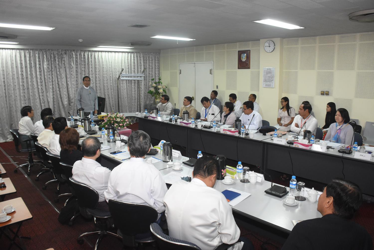 ထို့နောက် ရုပ်မြင်သံကြားနှင့် အသံလွှင့်လုပ်ငန်းများ ကြီးကြပ်မှုအဖွဲ့ ဒုတိယဥက္ကဋ္ဌ ပြန်ကြားရေးဝန်ကြီးဌာန အမြဲတမ်းအတွင်းဝန် ဦးမျိုးမြင့်မောင်က ပြန်ကြားရေးဝန်ကြီးဌာနက ဆောင်ရွက်လျက်ရှိသည့် လုပ်ငန်းစဉ်များ၊ ငွေကြေးပေးသုံးမှုကိစ္စရပ်များ၊ စာချုပ်များပြင်ဆင် ရေးကိစ္စရပ်၊ ဒစ်ဂျစ်တယ် ရုပ်သံအစီအစဉ်ထုတ်လွင်မှုများ၏ စိန်ခေါ်မှုများ၊ မြန်မာအသံနှင့် ရုပ်မြင်သံကြားကို SD မှ HD သို့ ပြောင်းလဲ လွှင့်ထုတ် ဆောင်ရွက်မှုအခြေအနေများကို ရှင်းလင်း တင်ပြသည်။