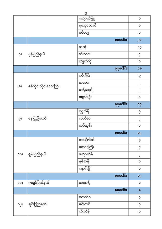 (၂၈-၁၁-၂၀၂၀) ရက်နေ့ ဓာတ်ခွဲစစ်ဆေးမှုများတွင် တွေ့ရှိခဲ့သော ဓာတ်ခွဲအတည်ပြုလူနာ (၁,၃၄၄) ဦး၏ မြို့နယ်အလိုက် တွေ့ရှိရမှုအခြေအနေမှာ အောက်ပါအတိုင်း ဖြစ်ပါသည်။