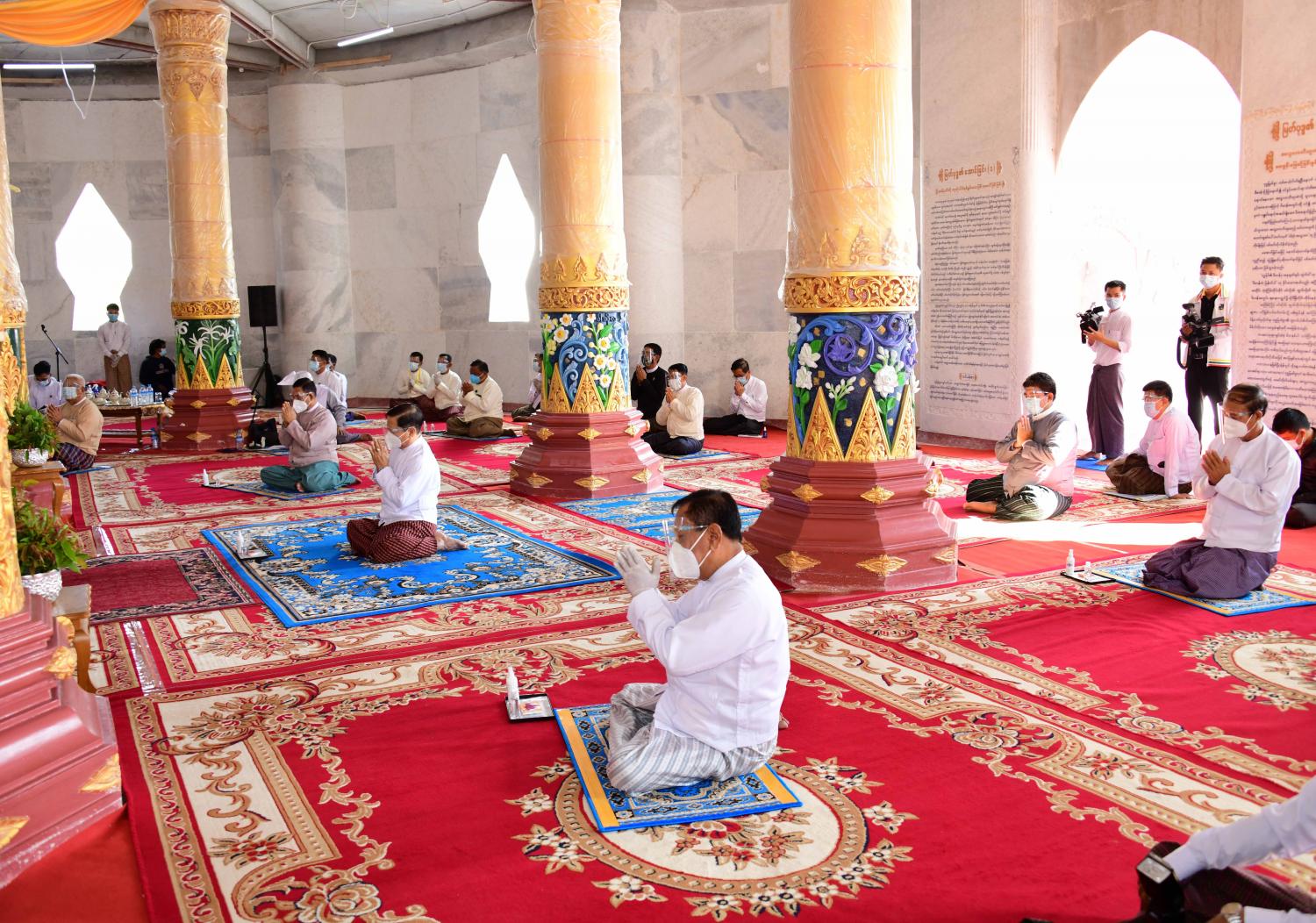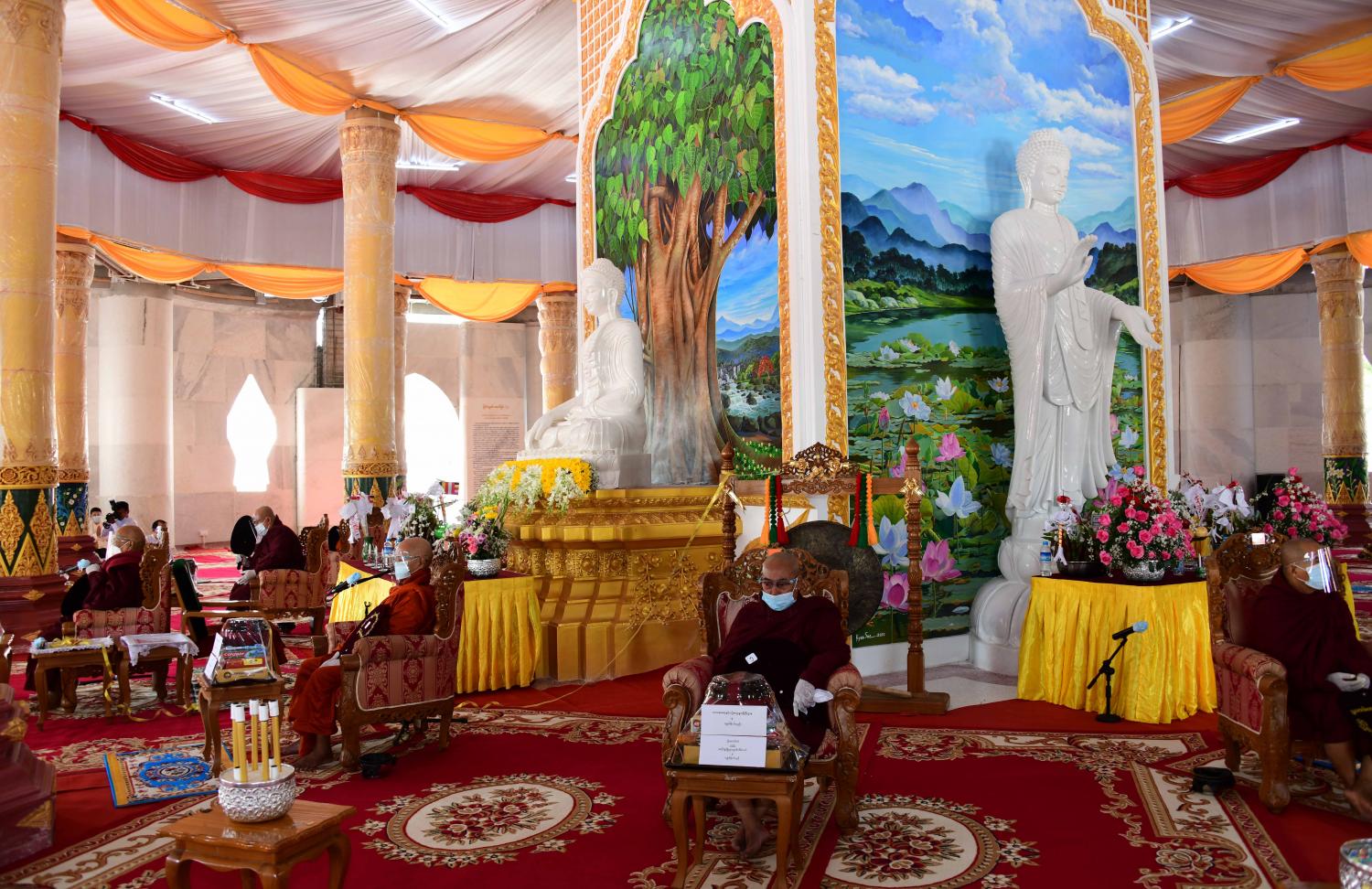 နေပြည်တော် ဒက္ခိဏသီရိမြို့နယ် ရာဇသင်္ဂဟလမ်း ကံ့ကော်ပန်းအဝိုင်းအနီးတွင် တည်ဆောက် ပူဇော်ထားသော ထာဝရငြိမ်းချမ်းရေးစေတီတော် ပထမအကြိမ် ဗုဒ္ဓပူဇနိယပွဲတော်နှင့် ဗုဒ္ဓါဘိသေက အနေကဇာတင် မဟာမင်္ဂလာအခမ်းအနားကို ယနေ့နံနက် ၉ နာရီတွင် ထာဝရငြိမ်းချမ်းရေးစေတီတော် ဂန္ဓကုဋိတိုက်အတွင်း၌ COVID-19 ကာကွယ် တားဆီးရေး ဆိုင်ရာ ညွှန်ကြားချက်များနှင့်အညီ ကျင်းပသည်။
