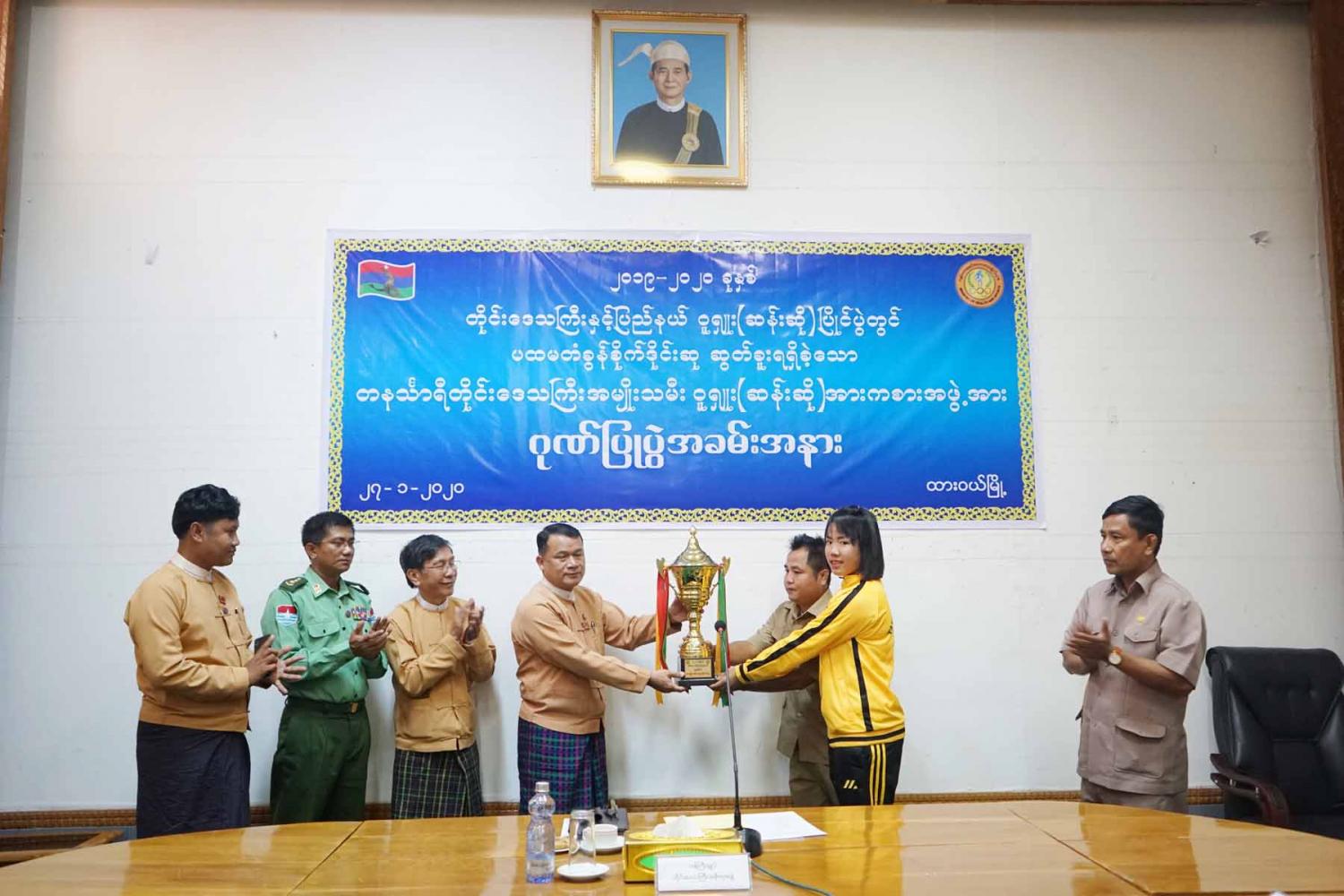 ၂၀၂၀ပြည့်နှစ်၊ တိုင်းဒေသကြီး/ပြည်နယ်ဝူရှူး(ဆန်းဆို)ပြိုင်ပွဲတွင် ပထမဒိုင်းဆုဆွတ်ခူးရရှိခဲ့သော တနင်္သာရီတိုင်းဒေသကြီး အမျိုးသမီး အားကစားအဖွဲ့အား ဂုဏ်ပြုပွဲအခမ်းအနားကို ယနေ့ မွန်းလွဲ ၂ နာရီ က ထားဝယ်မြို့၊ တိုင်းဒေသကြီးအစိုးရအဖွဲ့ရုံး၊ အစည်းအဝေးခန်းမ ၌ကျင်းပခဲ့သည်။