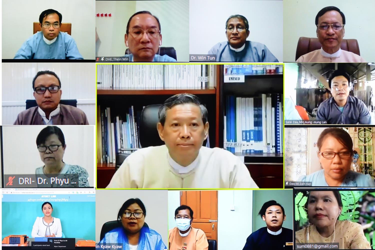 Myanmar Digital Education Platform တွင် DTVET Learning Management System စတင်လွှင့်တင်ခြင်း ဖွင့်ပွဲအခမ်းအနားကို ယနေ့ ညနေ ၄ နာရီခွဲတွင် နေပြည်တော်ရှိ ပညာရေး ဝန်ကြီးဌာန၌ Virtual စနစ်ဖြင့် ကျင်းပသည်။