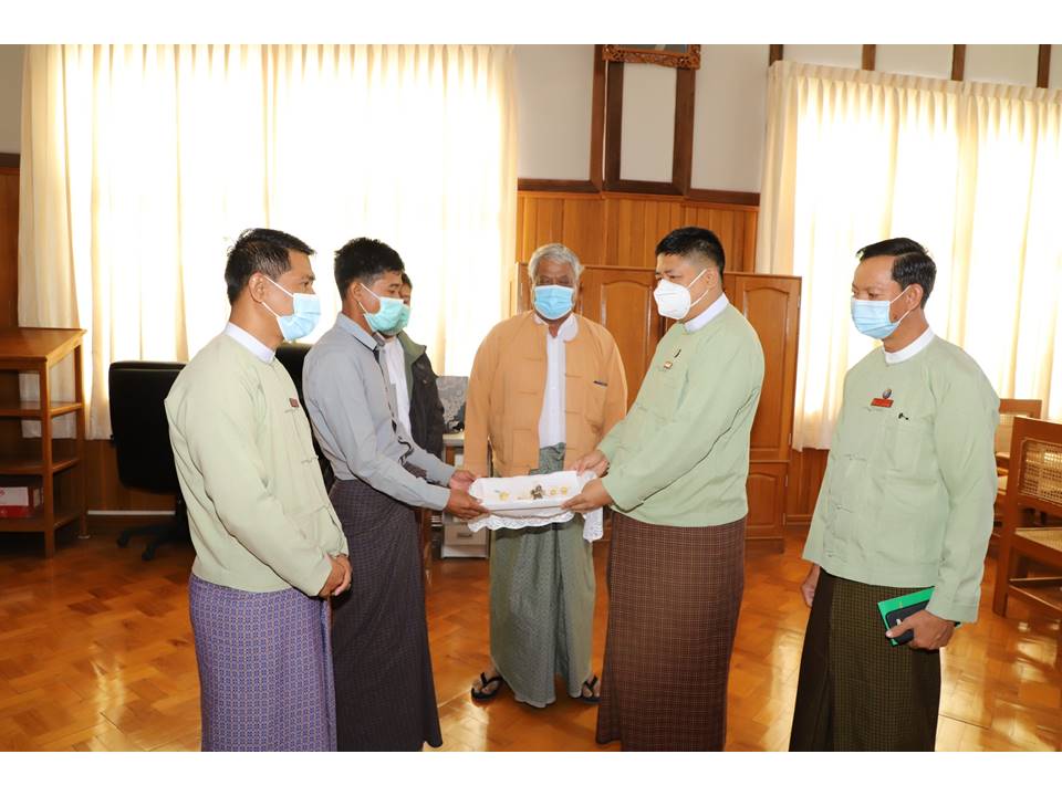 အလားတူ ဒေသခံ(၆)ဦးတို့မှ ပထမအကြိမ်အဖြစ် တွေ့ရှိခဲ့သည့် ရှေးဟောင်း ရွှေထည် ပစ္စည်း(၆)မျိုးနှင့် ဟင်္သာရုပ်(၁)ခုတို့ကို ဒီဇင်ဘာ ၁၄ ရက်နေ့က တိုင်းဒေသကြီး ဝန်ကြီးချုပ်ထံသို့ လာရောက် အပ်နှံ ပေးခဲ့ရာ အဆိုပါ ဒေသခံ(၆)ဦးအတွက် ကြိုတင် ဆုကြေးငွေ(၅၁)သိန်းကျပ်ကို ပြန်လည်ပေး အပ်ချီးမြှင့် ခဲ့ကြောင်းသိရသည်။