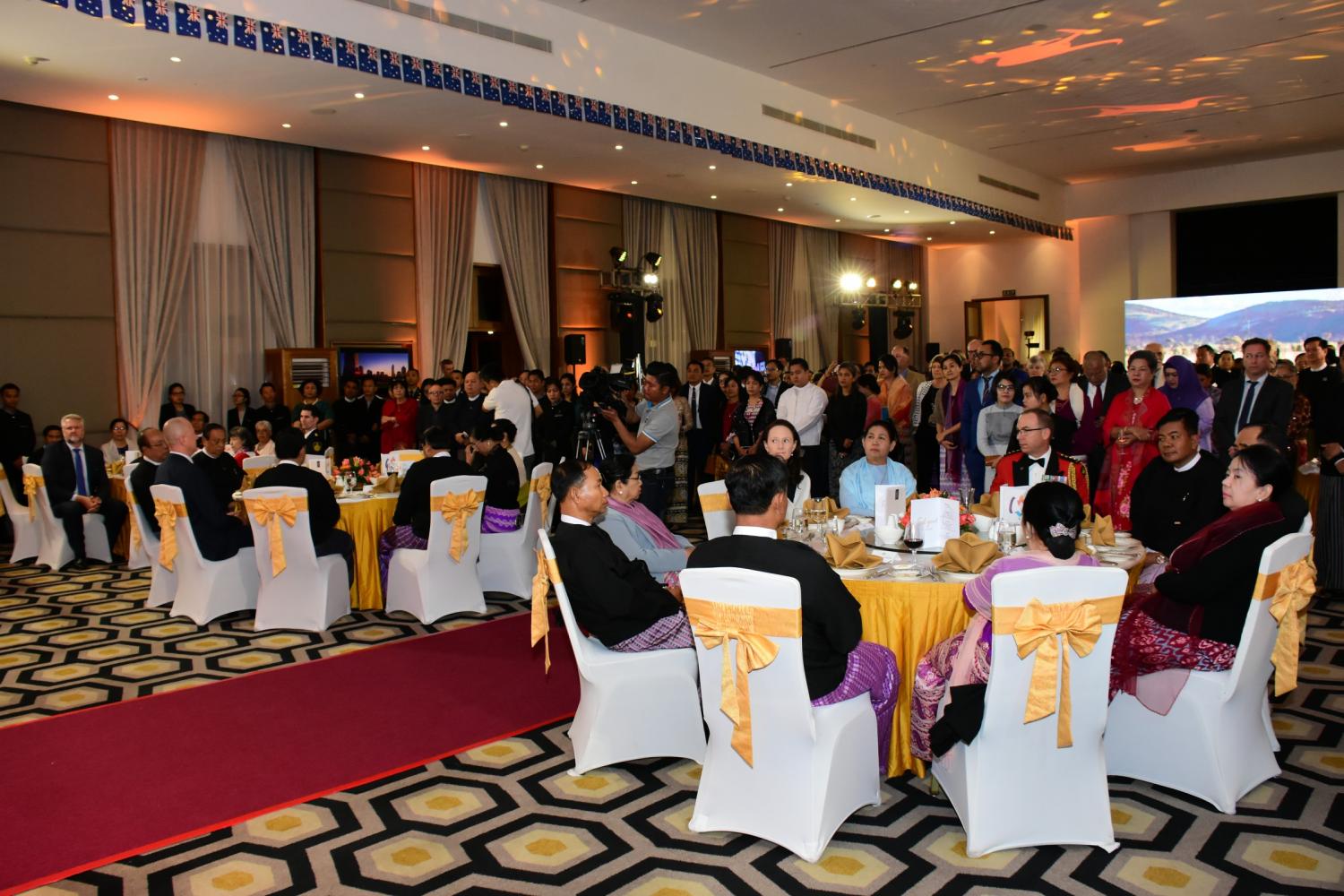 ထို့နောက် ပြည်ထောင်စုဝန်ကြီး ဒေါက်တာမျိုးသိမ်းကြီးနှင့်ဇနီး၊ဩစတြေးလျနိုင်ငံ သံအမတ်ကြီးတို့သည် အခမ်းအနားသို့ တက်ရောက်လာကြသူများနှင့်အတူ ဩစတြေးလျနိုင်ငံ အမျိုးသားနေ့ အထိမ်းအမှတ် ဂုဏ်ပြုညစာကို အတူတကွသုံး ဆောင်ကြသည်။