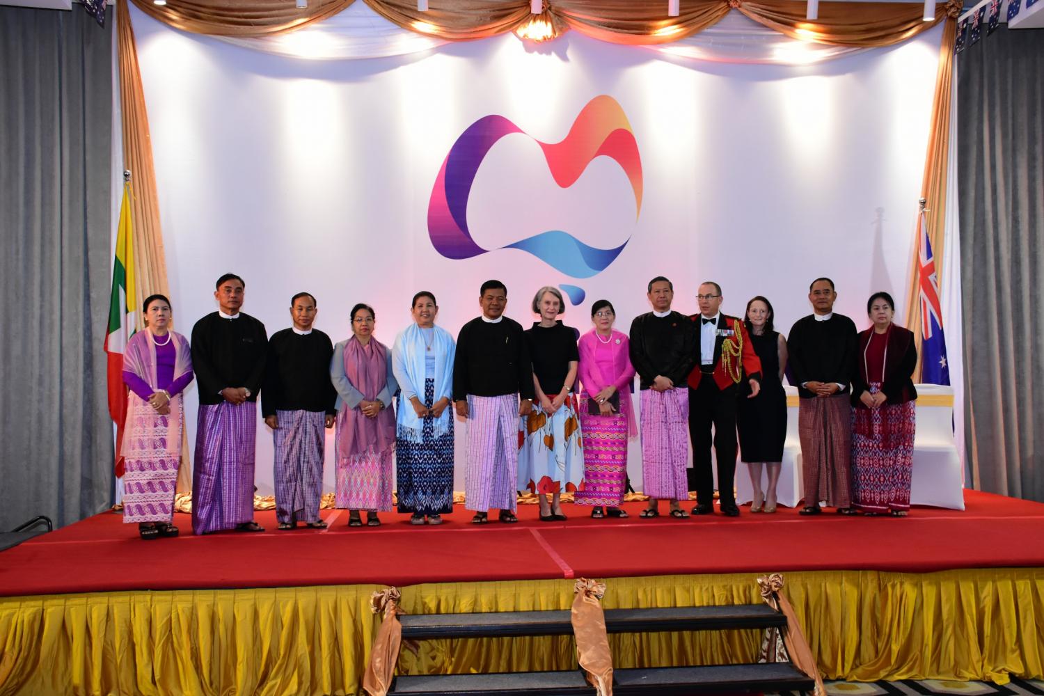 ယင်းနောက် ပြည်ထောင်စုဝန်ကြီး ဒေါက်တာမျိုးသိမ်းကြီးနှင့်ဇနီး ဒေါ်စန်းစန်းယု၊ သံအမတ်ကြီး မစ္စ အင်ဒရီရာဖော့ခ်နာ တို့သည် အခမ်းအနားသို့ တက်ရောက်လာကြသူများနှင့်အတူ မှတ်တမ်းတင် ဓာတ်ပုံရိုက်သည်။