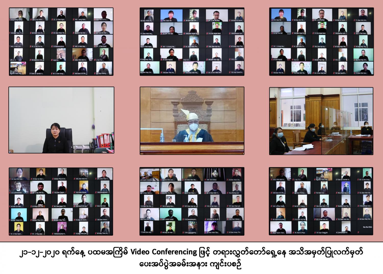 (Coronavirus Disease 2019) COVID-19 ကာကွယ်၊ ထိန်းချုပ်၊ ကုသရေး အမျိုးသားအဆင့် ဗဟိုကော်မတီမှ အသွားအလာ ကန့်သတ်ချက်များ ရုပ်သိမ်းပြီးနောက် ပြည်ထောင်စု တရားလွှတ်တော်ချုပ်မှ ဤကိစ္စအလို့ငှာ အမိန့်တစ်စုံတစ်ရာ ထပ်မံ ထုတ်ပြန်သည့် အချိန်အထိ ဗီဒီယိုကွန်ဖရင့်စနစ်ဖြင့် ပေးအပ်သည့် အခမ်းအနားများ ကို ဆက်လက်ကျင်းပသွားမည် ဖြစ်ကြောင်း သိရသည်။