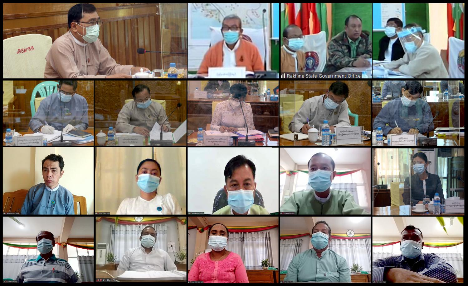 အစည်းအဝေးသို့ လူမှုဝန်ထမ်း၊ ကယ်ဆယ်ရေးနှင့် ပြန်လည်နေရာချထားရေးဝန်ကြီးဌာန ပြည်ထောင်စုဝန်ကြီး ဒေါက်တာ ဝင်းမြတ်အေး၊ ရခိုင်ပြည်နယ်ဝန်ကြီးချုပ် ဦးညီပု၊ ဒုတိယဝန်ကြီး ဦးစိုးအောင်၊ ရခိုင်ပြည်နယ်အစိုးရအဖွဲ့ဝင် ဝန်ကြီးများ၊ အမြဲတမ်းအတွင်းဝန်၊ ညွှန်ကြားရေးမှူး ချုပ်များ၊ ဌာနဆိုင်ရာ ကိုယ်စားလှယ်များနှင့် IDP စခန်း ကိုယ်စားလှယ်များ Online မှ တက်ရောက်ကြသည်။