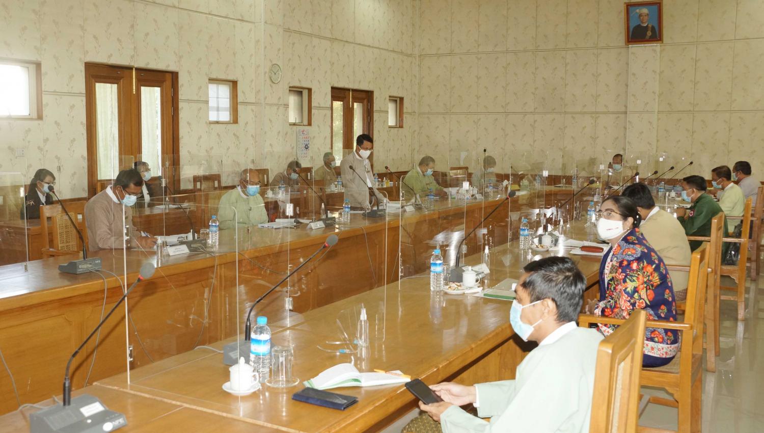 ထို့နောက် နေပြည်တော်လယ်ယာမြေစီမံခန့်ခွဲမှုအဖွဲ့ အတွင်းရေးမှူး ဦးဇော်မိုးအောင်က လုပ်ငန်းဆောင်ရွက်နေမှု အခြေအနေများကို ရှင်းလင်း ဆွေးနွေးတင်ပြပြီး တက်ရောက်လာကြသည့် အဖွဲ့ဝင်များက သက်ဆိုင်ရာကဏ္ဍများ အလိုက်ဆွေးနွေး တင်ပြကြရာ နေပြည်တော် ကောင်စီ ဥက္ကဋ္ဌနှင့် နေပြည်တော်ကောင်စီဝင်တို့က ဆွေးနွေးမှုများအား ပေါင်းစပ်ညှိနှိုင်းဆောင်ရွက်ပေးခဲ့ကြောင်း သိရှိရသည်။