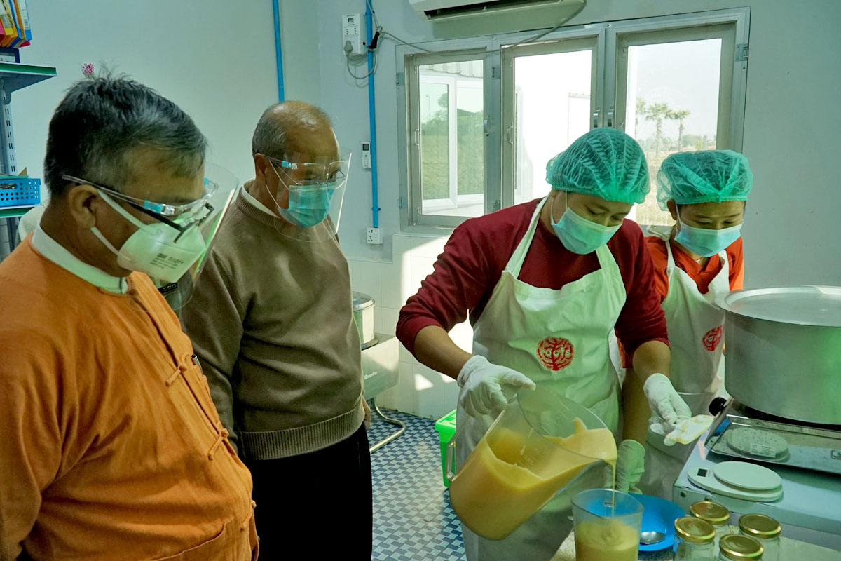 တိုင်းဒေသကြီးဝန်ကြီးချုပ် နှမ်းကုန်ချောထုတ်စက်ရုံသို့ ရောက်ရှိစဉ် စက်ရုံအတွင်းလုပ်ငန်း လည်ပတ် ဆောင်ရွက် နေမှုအား လှည့်လည်ကြည့်ရှုဆောင်ရွက်ရာ တာဝန်ရှိသူတို့က လိုက်လံရှင်းလင်း ပြသခဲ့ကြပြီး ရှင်းလင်းဆောင်တွင် မကွေးတိုင်းဒေသကြီး ကျေးလက်ဒေသဖွံ့ဖြိုးတိုးတက်ရေးဦးစီးဌာန တိုင်းဒေသကြီး ဦးစီးမှူး ဦးမျိုးအောင်က ဒေသတောင်သူများ ရေရှည်တည်တံ့သည့် အကျိုးစီးပွား ဖြစ်ထွန်းလာစေရန် ရည်ရွယ်၍ တောင်သူများကိုယ်တိုင် စီမံခန့်ခွဲနိုင်ရေး စီမံဆောင်ရွက်ပေးခဲ့မှု အခြေအနေများနှင့် ပတ်သက်၍လည်းကောင်း၊ နှမ်းကုန်ချောထုတ်စက်ရုံ တာဝန်ခံက စက်ရုံလည်ပတ်နေမှုအခြေအနေ များနှင့် ပဲထောပတ်၊ နှမ်းထောပတ်ထုတ်လုပ်ပြီး ရန်ကုန်၊ မန္တလေးရှိ အရောင်းစင်တာ(၃၇)ခုနှင့် အခြားမြို့များသို့ အမှာစာပေးပို့ရောင်းချနေမှုနှင့် EU နိုင်ငံများသို့ ဈေးကွက်ချိတ်ဆက်ရန် လုပ်ငန်းစီမံဆောင်ရွက်နေမှုအခြေအနေများနှင့်ပတ်သက်၍လည်းကောင်း ရှင်းလင်းတင်ပြကာ စိုက်ပျိုးမွေးမြူရေးနှင့် ဆည်မြောင်းဝန်ကြီး ဦးဝင်းမော်ဌေးက ဖြည့်စွက်ရှင်းလင်း တင်ပြခဲ့သည်။