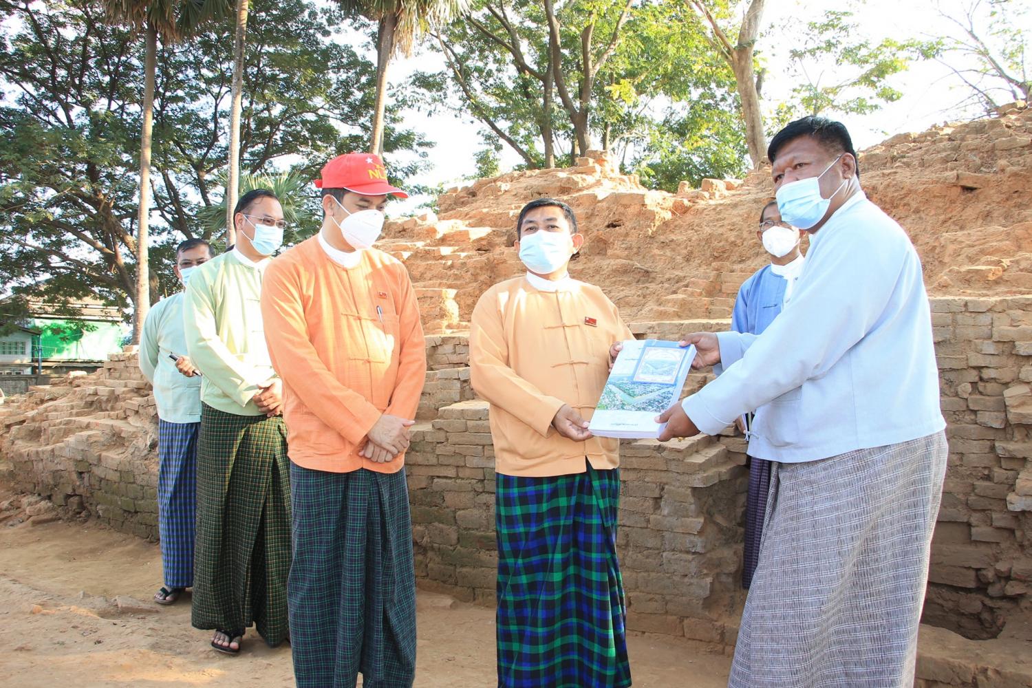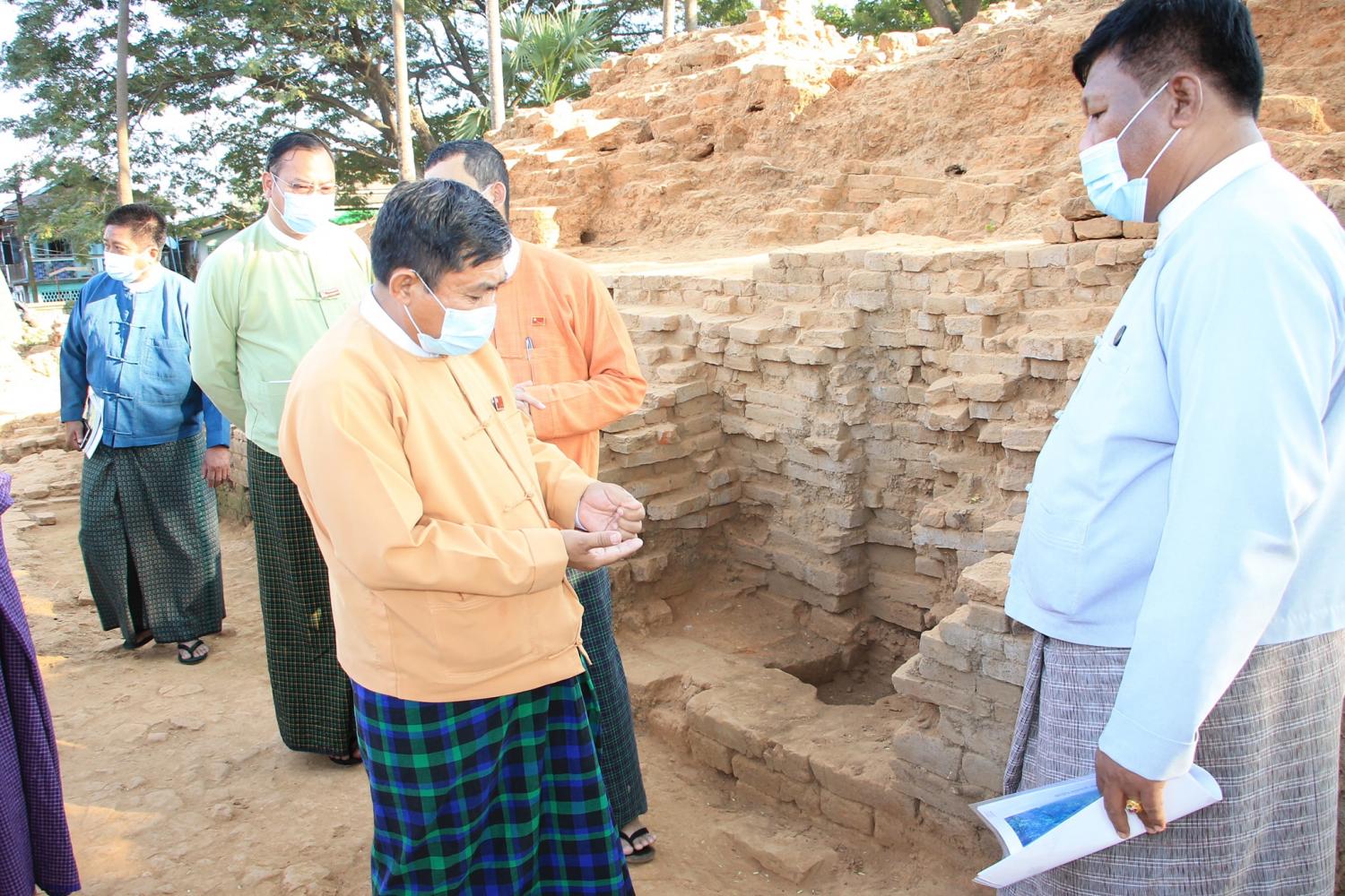 ထို့နောက် ရှေးဟောင်းသုတေသနနှင့် အမျိုးသားပြတိုက်ဦးစီးဌာန၊ ပဲခူးဌာနခွဲ ညွှန်ကြားရေးမှူး ဦးညိုမြင့်ထွန်းက ဝန်ကြီးချုပ်နှင့် ဝန်ကြီးတို့အား ဟံသာဝတီ ရှေးဟောင်းမြို့ရိုး တူးဖော်မှု ကုန်း(BGO-4) တူးဖော်မှုလုပ်ငန်း သုတေသန အစီရင်ခံစာ စာအုပ်အား ပေးအပ်ခဲ့ပြီး တူးဖော် ဆောင်ရွက်နေမှု အခြေအနေအား ကြည့်ရှုကြ ကြောင်းသိရှိရသည်။