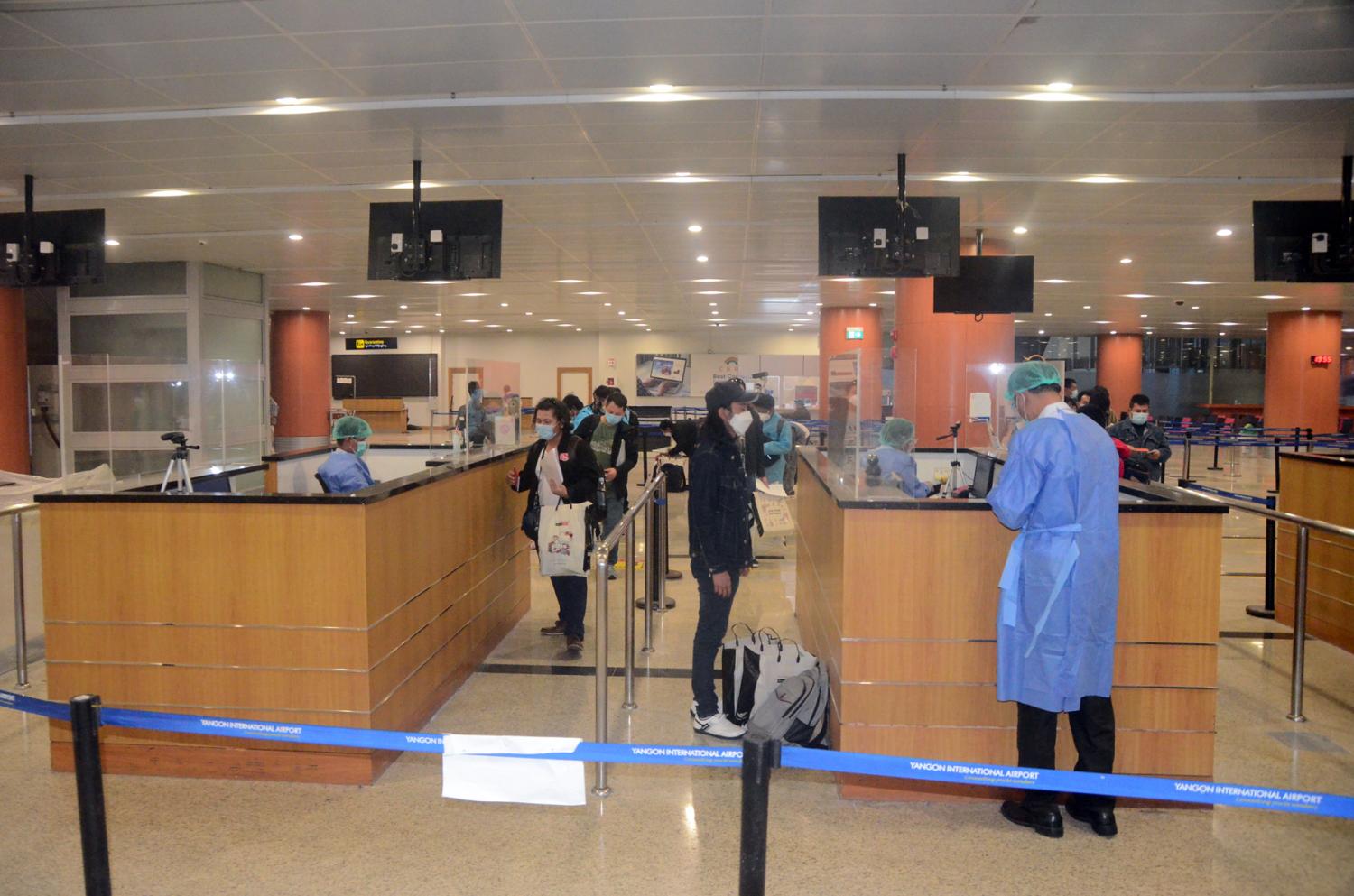 ၃။ ၎င်းတို့ ရန်ကုန်အပြည်ပြည်ဆိုင်ရာလေဆိပ်သို့ ရောက်ရှိချိန်တွင် လူဝင်မှုကြီးကြပ်ရေး၊ ကျန်းမာရေးစိစစ်ရေး၊ သီးသန့်စီစဉ်ပေးသည့်နေရာ / သတ်မှတ်ဟိုတယ်များ၌ အသွားအလာ ကန့်သတ်မှု (၇) ရက်နှင့် နေအိမ်တွင် အသွားအလာကန့်သတ်မှု (၇) ရက် နေထိုင်စေရေးတို့ကို အလုပ်သမား၊ လူဝင်မှုကြီးကြပ်ရေးနှင့်ပြည်သူ့အင်အားဝန်ကြီးဌာန၊ ကျန်းမာရေးနှင့် အားကစား ဝန်ကြီးဌာနနှင့် ရန်ကုန်တိုင်းဒေသကြီး အစိုးရ အဖွဲ့တို့မှ သက်ဆိုင်ရာ အခန်းကဏ္ဍအလိုက် တာဝန်ယူ ဆောင်ရွက်ပေးခဲ့ပါသည်။