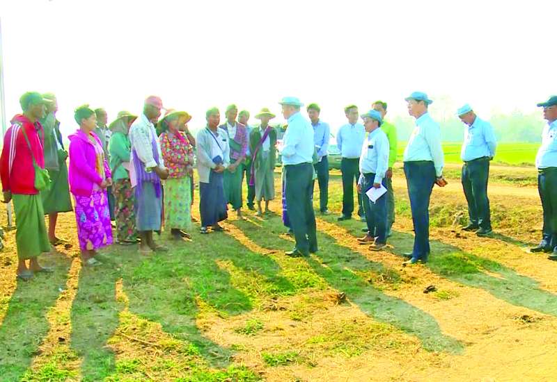 စိုက်ပျိုးရေး၊ မွေးမြူရေးနှင့်ဆည်မြောင်းဝန်ကြီးဌာန ဒုတိယဝန်ကြီး ဦးဗိုလ်ဗိုလ်ကျော်သည် တာဝန်ရှိသူများနှင့်အတူ ယနေ့နံနက်ပိုင်းက တပ်ကုန်းမြို့နယ်ရှိ ဆင်သေဆည်ရေသောက်စနစ် လက်ဝဲ/လက်ယာ တူးမြောင်းစနစ်များမှ နွေစပါးနှင့် နွေသီးနှံ စိုက်ပျိုးရေပေးဝေနေမှုအခြေအနေကို ကွင်းဆင်းကြည့်ရှုစစ်ဆေးသည်။