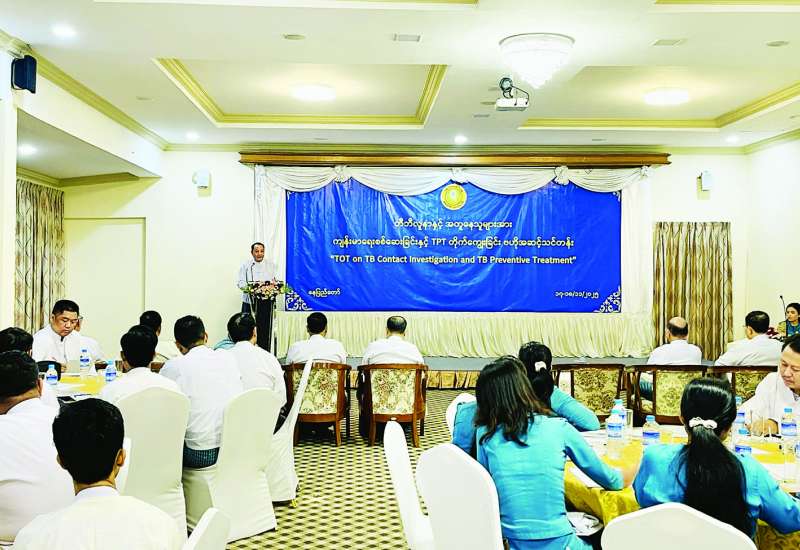 တီဘီလူနာနှင့် အတူနေသူများအား ကျန်းမာရေးစစ်ဆေးခြင်းနှင့် TPT တိုက်ကျွေးခြင်း ဗဟိုအဆင့်သင်တန်း “TOT on TB Contact Investigation and TB Preventive Treatment” ဖွင့်ပွဲအခမ်းအနားကို နိုဝင်ဘာ ၁၇ ရက်က နေပြည်တော်ရှိ အမရာဟိုတယ်၌ ကျင်းပသည်။