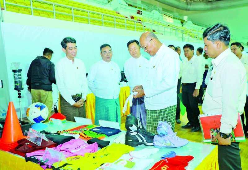 မြန်မာနိုင်ငံ အိုလံပစ်ကော်မတီဥက္ကဋ္ဌ အားကစားနှင့်လူငယ်ရေးရာဝန်ကြီးဌာနနှင့် ဟိုတယ်နှင့်ခရီးသွားလာရေးဝန်ကြီးဌာန ပြည်ထောင်စုဝန်ကြီး Jeng Phang နော်တောင်သည် ဒုတိယဝန်ကြီး ဦးထိန်လင်းနှင့် ဦးဇင်မင်းထက်၊ တာဝန်ရှိသူများနှင့်အတူ ယနေ့နံနက်ပိုင်းက မြန်မာ့အားကစား အောင်နိုင်ရေး၊ နိုင်ငံတော်၏ အားကစားအဆင့်အတန်း မြင့်မားရေးနှင့် ရွှေတံဆိပ်ဆုများရရှိအောင် အထောက်အကူဖြစ်စေရေးအတွက် (၃၃)ကြိမ်မြောက် အရှေ့တောင်အာရှ အားကစားပြိုင်ပွဲသို့ ယူဆောင်သွားမည့် အားကစားနည်းများအလိုက် မြန်မာအားကစားအဖွဲ့များက ပြိုင်ပွဲအသုံးအဆောင် အထောက်အကူပြုပစ္စည်းများ၊ ပြိုင်ပွဲဝင်ဝတ်စုံများ၊ ဖိနပ်များ၊ ပြိုင်ပွဲသုံး လက်နက်ကိရိယာများ ဝယ်ယူထားရှိမှုကို ကြည့်ရှုစစ်ဆေးသည်။