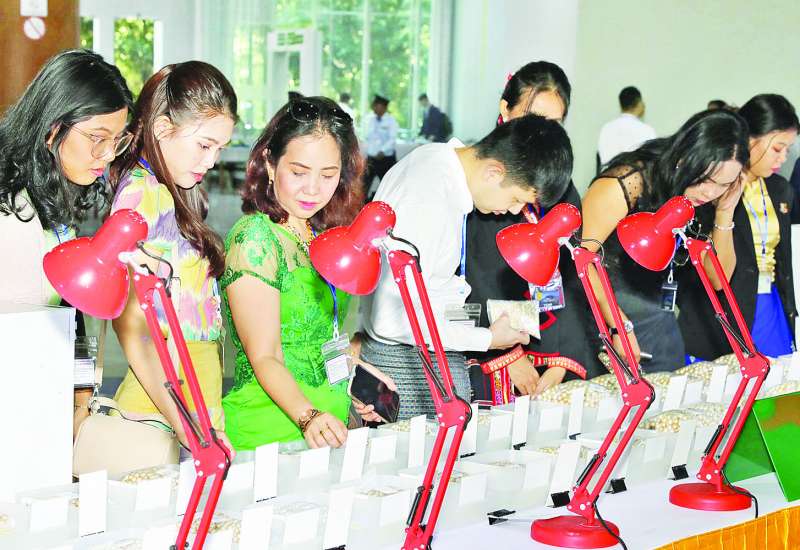 ၂၀၂၅ ခုနှစ်၊ အကြိမ်(၆၀)မြောက် မြန်မာ့ကျောက်မျက်ရတနာပြပွဲ ပထမနေ့ကို ယနေ့နံနက်ပိုင်းတွင် နေပြည်တော်ရှိ မဏိရတနာ ကျောက်စိမ်းခန်းမ၌ ကျင်းပရာ ပြည်တွင်း ပြည်ပရတနာကုန်သည်များဖြင့် စည်ကားလျက်ရှိသည်။