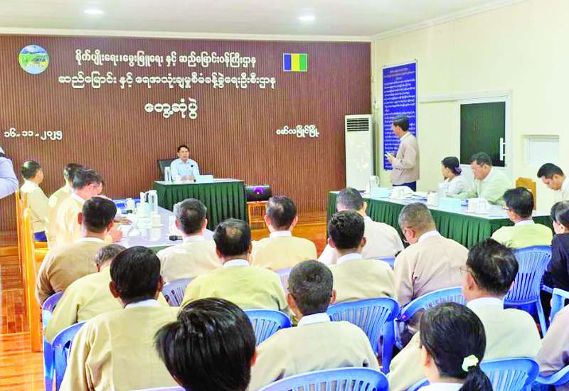 စိုက်ပျိုးရေး၊ မွေးမြူရေးနှင့်ဆည်မြောင်းဝန်ကြီးဌာန ပြည်ထောင်စုဝန်ကြီး ဦးမင်းနောင်သည် ယမန်နေ့နံနက်ပိုင်းတွင် မွန်ပြည်နယ် ဆည်မြောင်းနှင့်ရေအသုံးချမှုစီမံခန့်ခွဲရေးဦးစီးဌာနအစည်းအဝေးခန်းမ၌ ပြည်နယ်၊ ခရိုင်နှင့် မြို့နယ်အဆင့် လယ်ယာကဏ္ဍဆိုင်ရာ တာဝန်ရှိသူများအား တွေ့ဆုံသည်။
