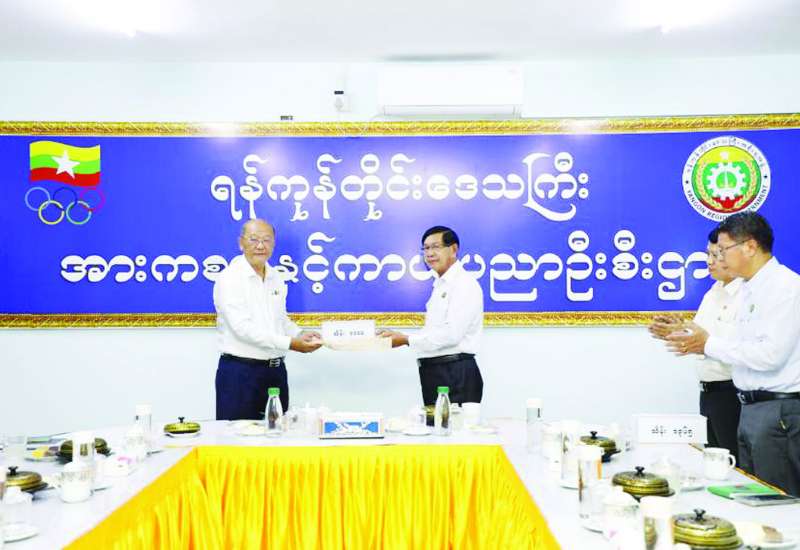 ၂၀၂၅ခုနှစ် ဒီဇင်ဘာ ၉ ရက်မှ ၂၀ ရက်အထိ ထိုင်းနိုင်ငံတွင် ကျင်းပပြုလုပ်မည့် (၃၃)ကြိမ်မြောက် အရှေ့တောင်အာရှအားကစားပြိုင်ပွဲသို့ ဝင်ရောက်ယှဉ်ပြိုင်မည့် အားကစားအဖွဲ့များ အောင်မြင်မှုရရှိစေရေးနှင့် ပြိုင်ပွဲသို့ဝင်ရောက်ယှဉ်ပြိုင်ရန် ရန်ကုန်တိုင်းဒေသကြီးမှ ရွေးချယ်ခံရသည့် အုပ်ချုပ်သူ/နည်းပြများနှင့် အားကစားသမားများအတွက် ရန်ကုန်တိုင်းဒေသကြီးမှ ထောက်ပံ့ချီးမြှင့်ငွေပေးအပ်သည့် အခမ်းအနားကို ရန်ကုန်တိုင်းဒေသကြီး တောင်ဥက္ကလာပမြို့နယ် ပဒေသာအားကစားကွင်းရှိ အားကစားနှင့်ကာယပညာဦးစီးဌာနရုံး အစည်းအဝေးခန်းမ၌ ကျင်းပရာ မြန်မာနိုင်ငံအိုလံပစ်ကော်မတီဥက္ကဋ္ဌ၊ အားကစားနှင့်လူငယ်ရေးရာဝန်ကြီးဌာနနှင့် ဟိုတယ်နှင့်ခရီးသွားလာရေးဝန်ကြီးဌာန ပြည်ထောင်စုဝန်ကြီး Jeng Phang နော်တောင်၊ ရန်ကုန်တိုင်းဒေသကြီး ဝန်ကြီးချုပ် ဦးစိုးသိန်း၊ အားကစားနှင့်ကာယပညာဦးစီးဌာန ညွှန်ကြားရေးမှူးချုပ်နှင့် တာဝန်ရှိသူများ တက်ရောက်ကြသည်။