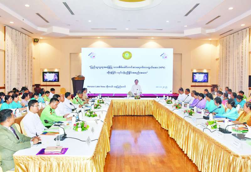 ပြည်သူလူထုအခြေပြုသားအိမ်ခေါင်းကင်ဆာရောဂါကာကွယ်ဆေး(HPV) ထိုးနှံခြင်းဆိုင်ရာ ညှိနှိုင်းအစည်းအဝေးကို ယနေ့နံနက်ပိုင်းတွင် နေပြည်တော် ဒက္ခိဏသီရိမြို့နယ် Horizon Lake View ဟိုတယ်၌ ကျင်းပသည်။