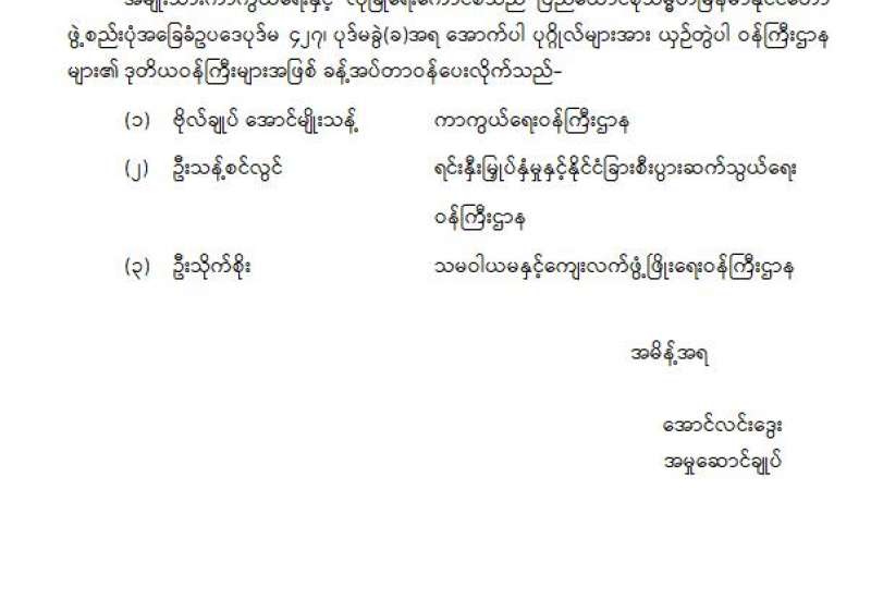 ဒုတိယဝန်ကြီးများ ခန့်အပ်တာဝန်ပေးခြင်း